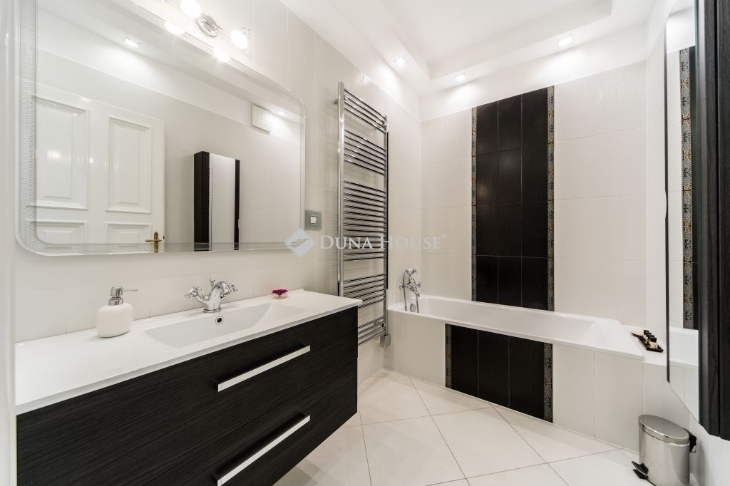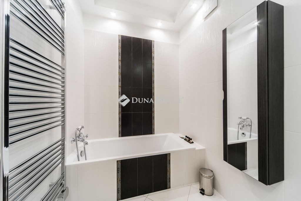 A két fürdőszoba eltérő kialakítása – kád és nagyméretű zuhanyzó – a mindennapi használat során is praktikus és kényelmes megoldást nyújt.