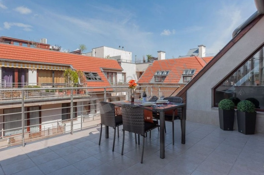 Ó utcában, 2006-os építésű épületben eladó két fürdőszobás, belső kétszintes penthouse.
