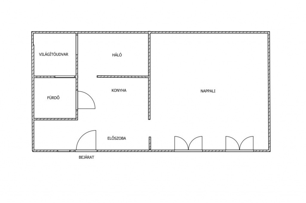 A lakás 39 nm-es, 1,5 szobás, tágas hatású, udvari ablakai ellenére világos.