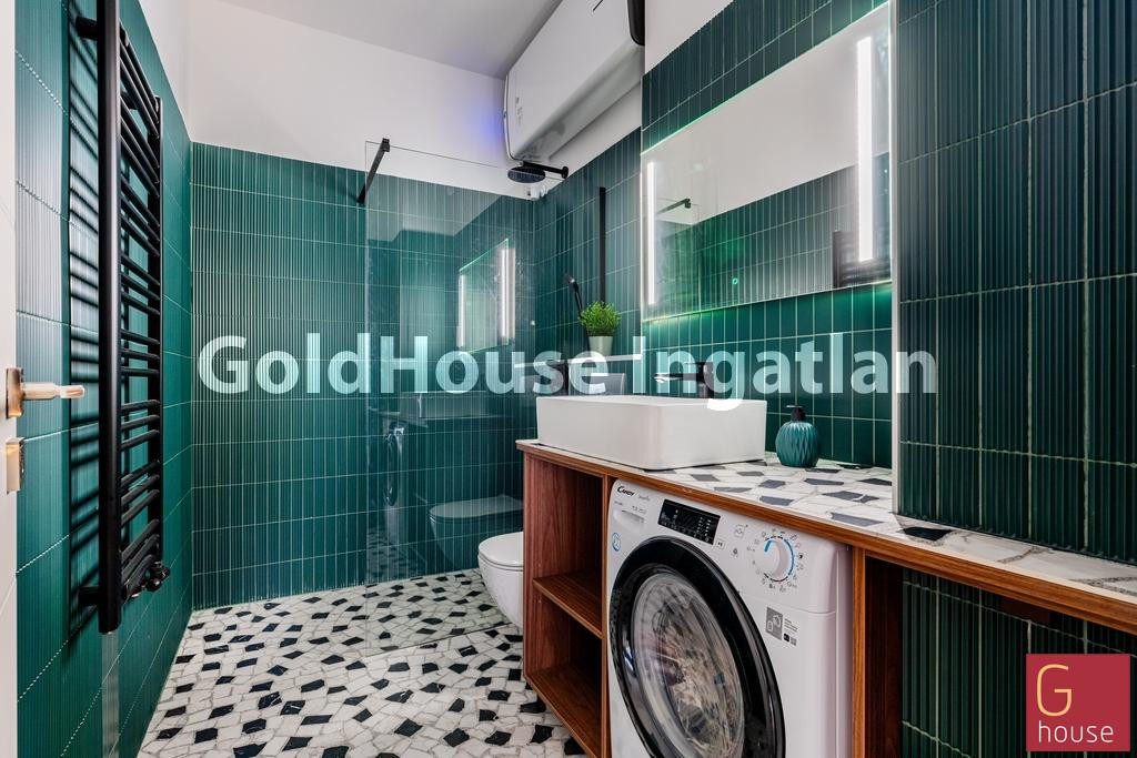 A lakás teljeskörűen felújított: megújult a gépészet és az elektromos hálózat, új külső és belső nyílászárók kerültek beépítésre, a halszálkás fa parketta elegáns karaktert ad a térnek, a külön helyiségben elhelyezett konyhát Bosch gépek teszik teljessé.