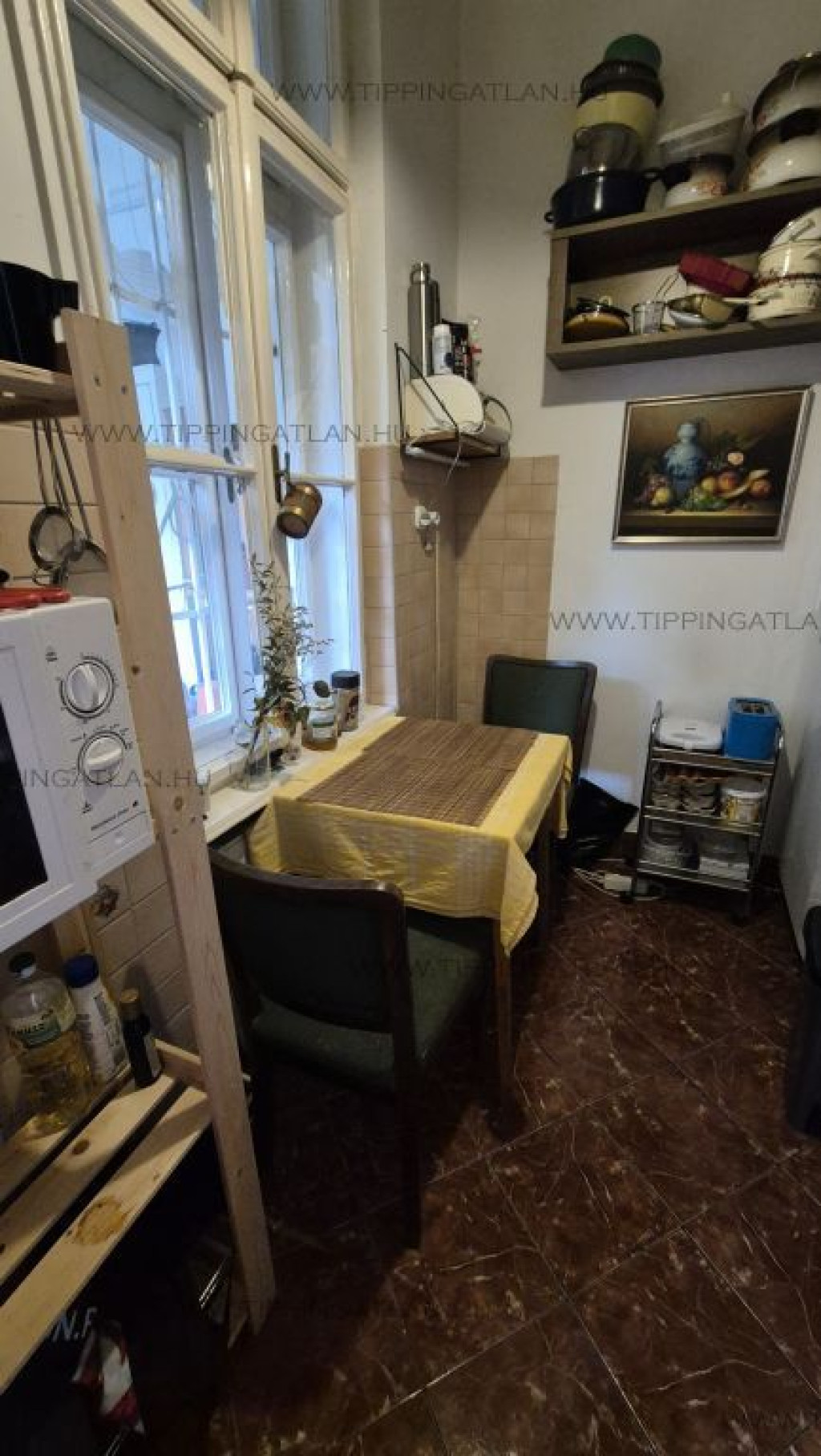 A lakás 71nm-es, jelenlegi elosztása szerint megtalálható benne 2 szép nagy utcai szoba, egy ablakos konyha-étkező, fürdő-wc, illetve előszoba.