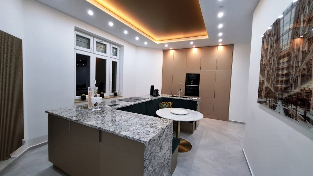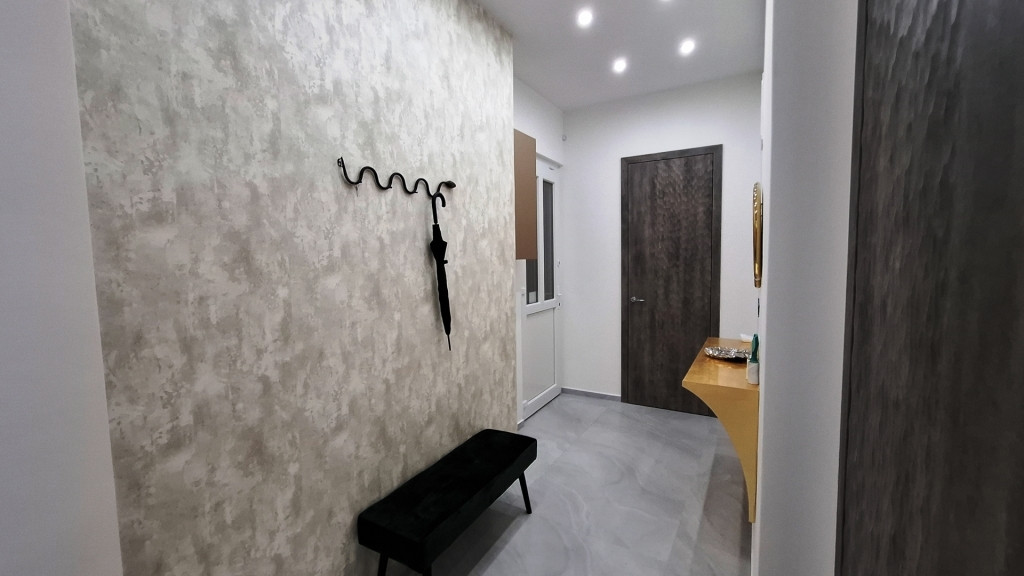 Az ingatlan felújításánál fontos szempont volt a minőségi anyagok használata, az elegáns letisztult életterek.