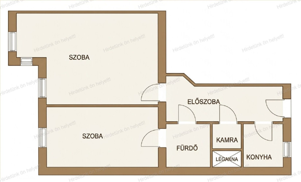 A szobák a csendes Paulay Ede utcára, a konyha ablaka belső udvarra néz. Elrendezése praktikus, konyha, kamra, fürdőszoba, nappali és hálószoba.