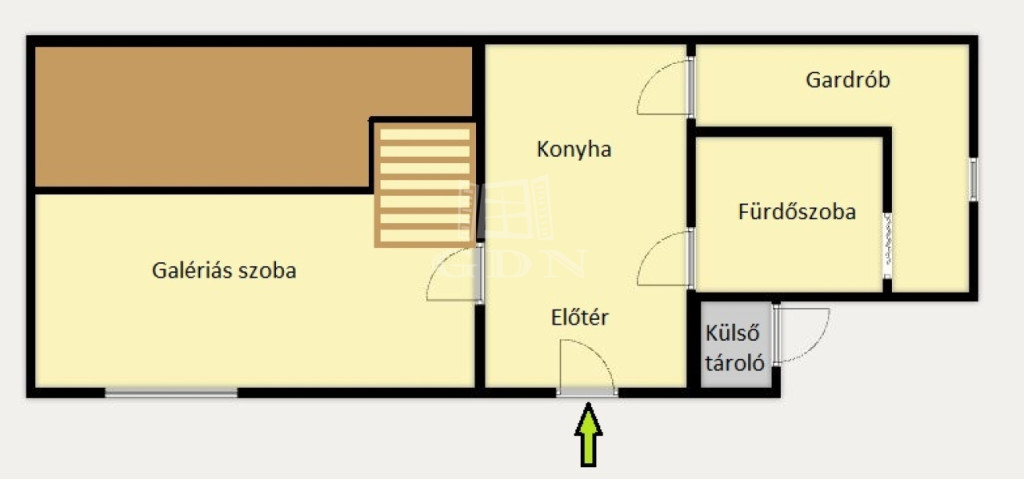 Dél–nyugati tájolásának köszönhetően világos, meleg hangulatú. A tágas szoba a nagy belmagasság miatt galériázott, ami tovább növeli a térérzetet.