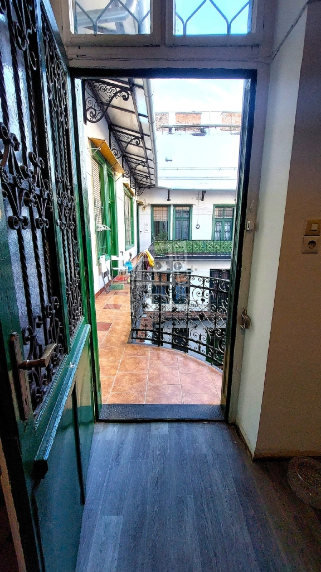 A városi pezsgés ellenére meglepően csendes, mivel a lakás belső udvarra néz.