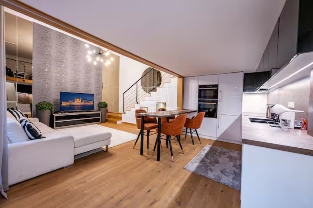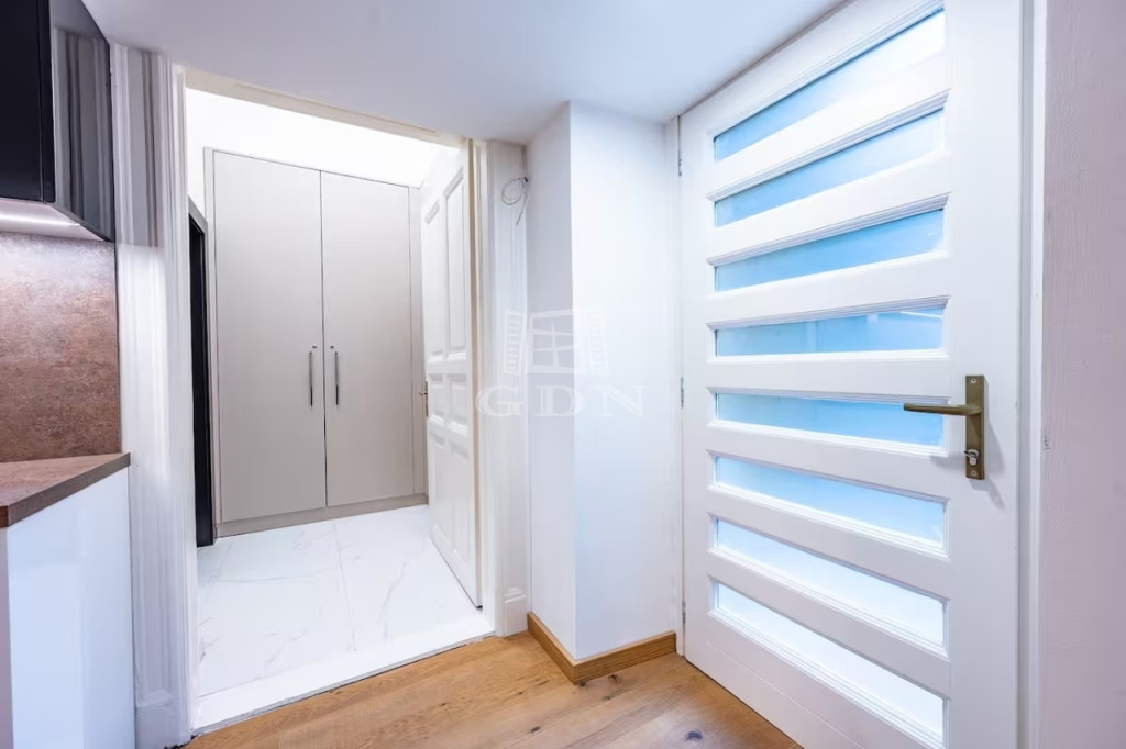 A lakás teljes körű felújításon esett át, ahol a klasszikus és a modern stílus tökéletes egyensúlyban találkozik: