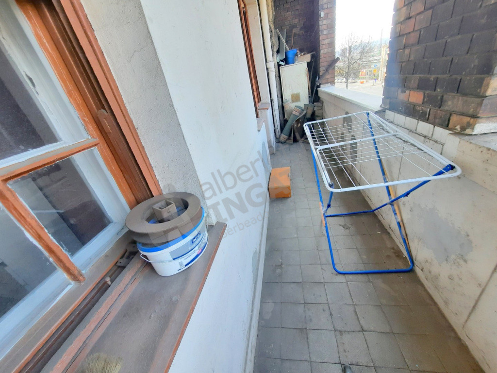 Jó állapotú, nem körfolyosós társasház 1. emeletén lévő, utcára néző, 8m2 terasszal rendelkező, enyhén felújítandó.