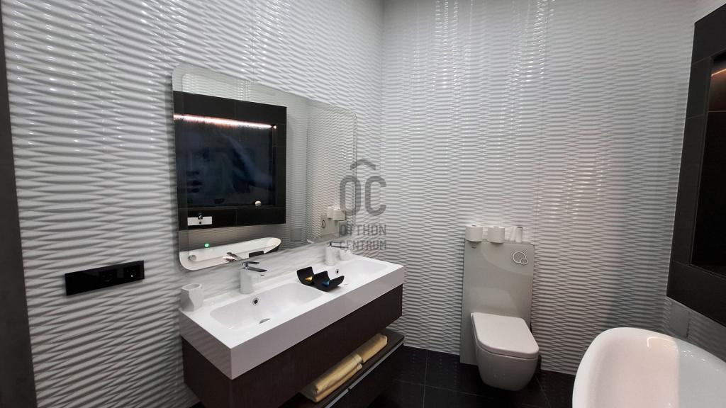 A remek elrendezésű lakás nagy nappalival , hatalmas étkezős konyhával és két fürdőszobakapcsolatos hálószobával rendelkezik.A vendégek számára külön mosdót alakítottak ki.