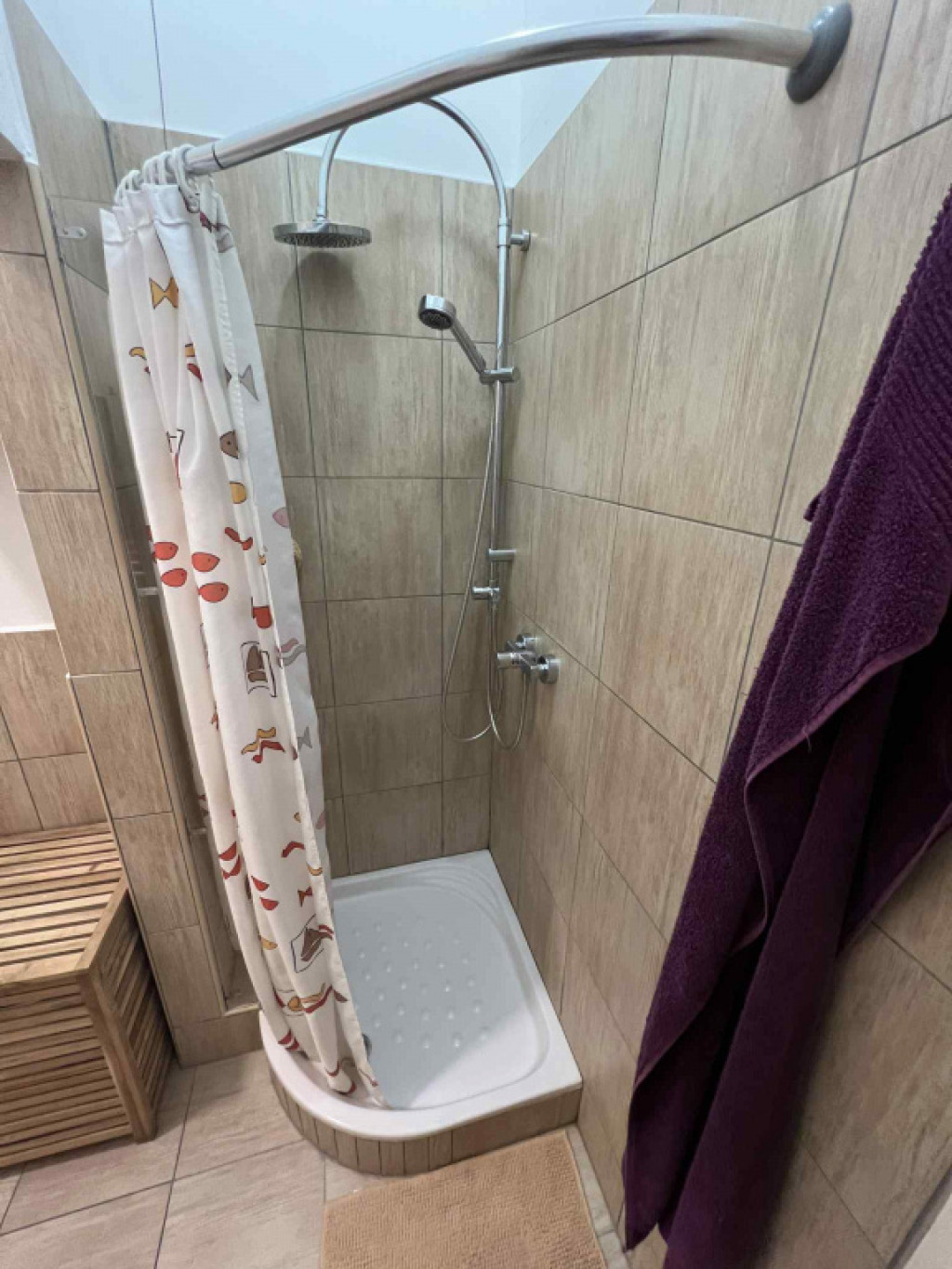 Kludi csaptelepek, olasz járólapok, spanyol csempézett zuhanyzós fürdő.