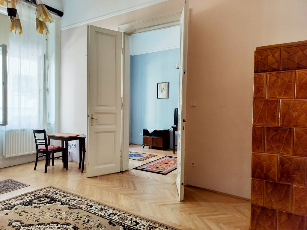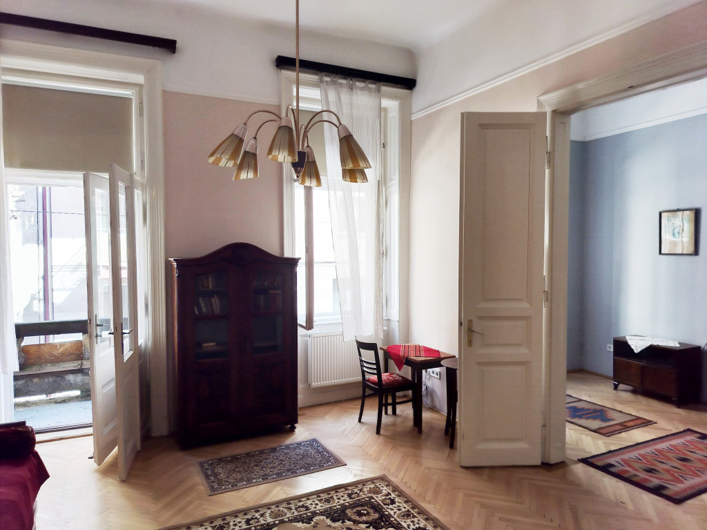 VI. Szív utcában eladó 1. emeleti, erkélyes, 62 nm, 2 szobás, jó állapotú lakás. Szobái tágasak, szellősek, a fürdőszoba (toalett külön található) és a konyha is ablakos, jól szellőztethető. Felújításkor a vezetékeket cserélték, a burkolatokat és nyílászárókat részlegesen - a szobák jó állapotú parkettája pl. eredeti.