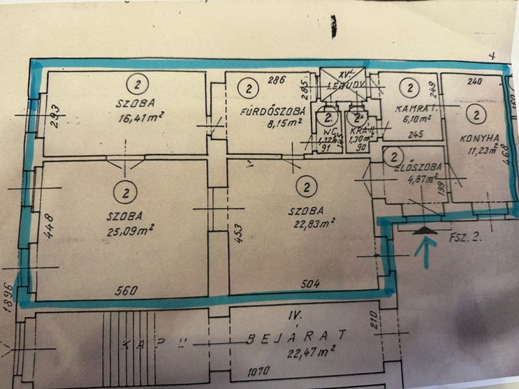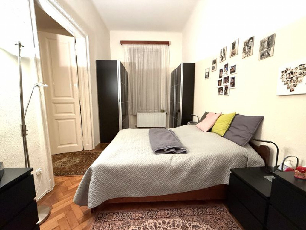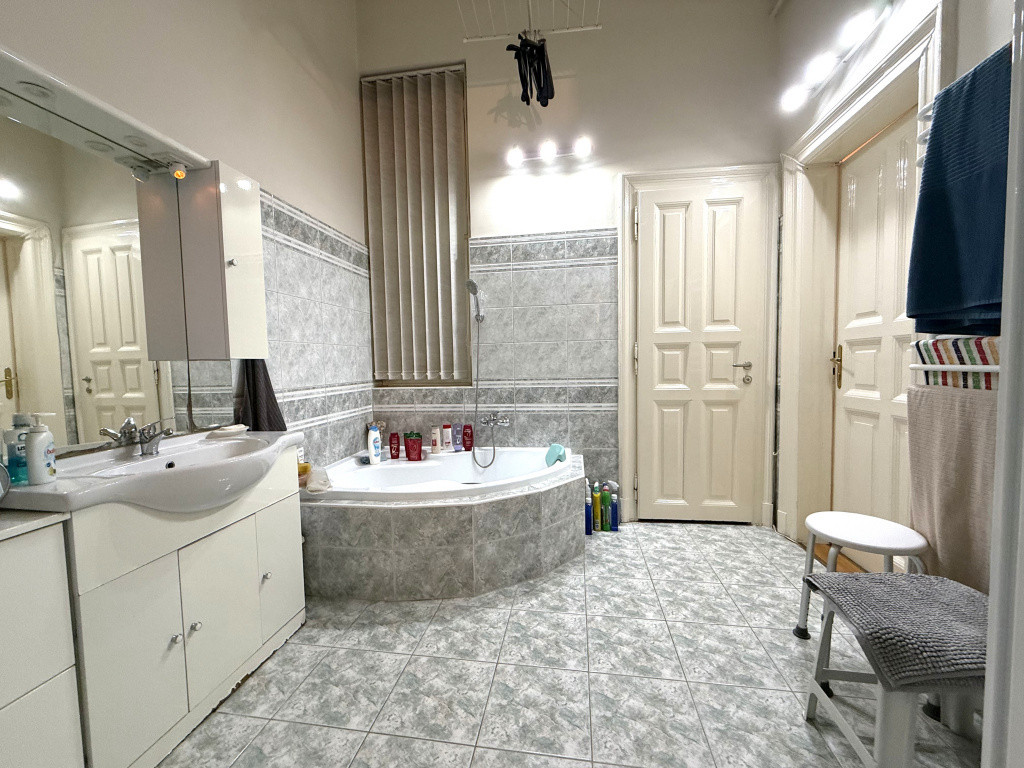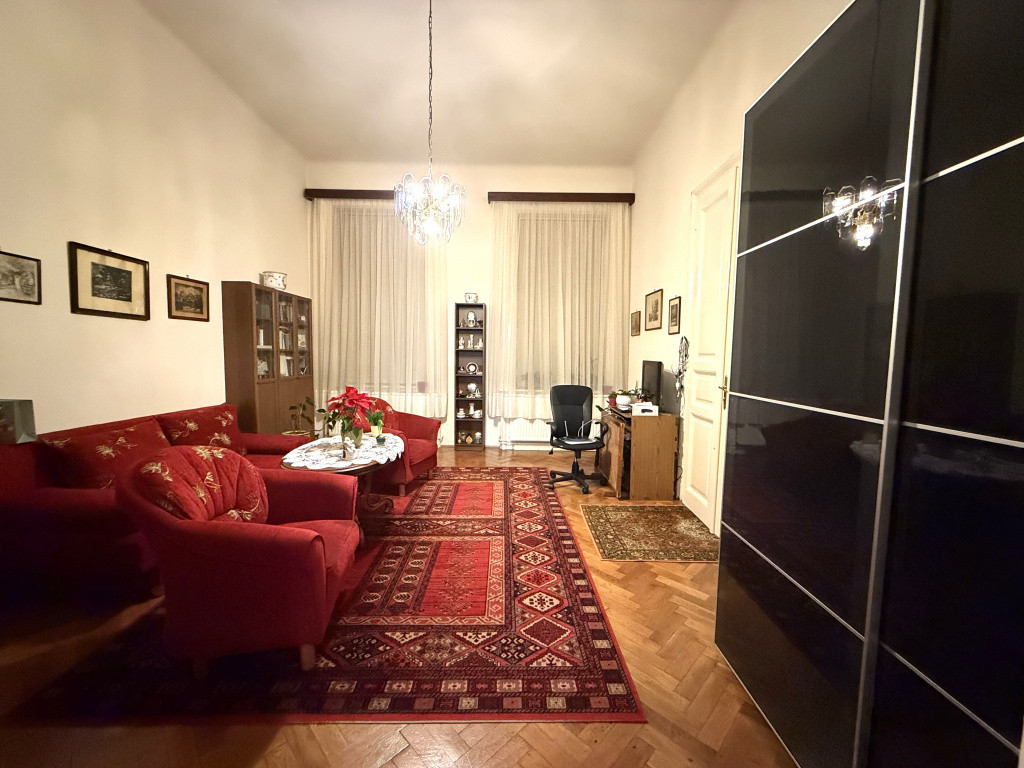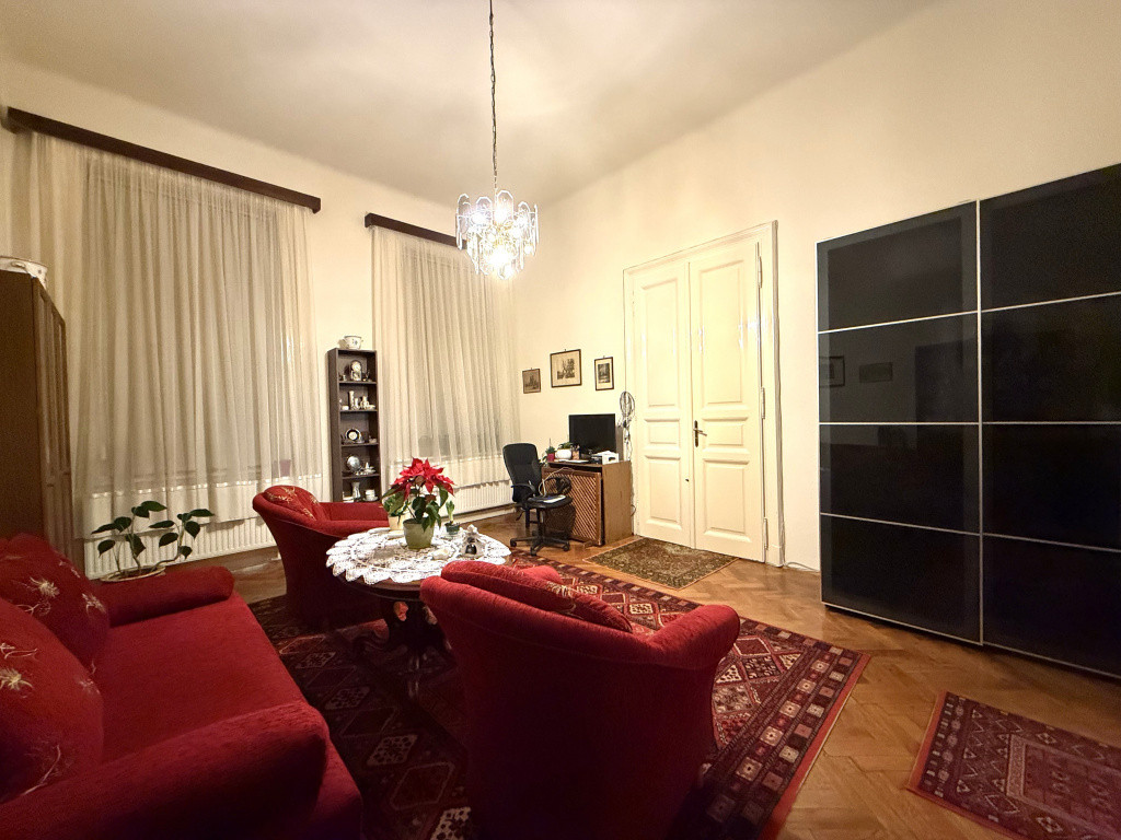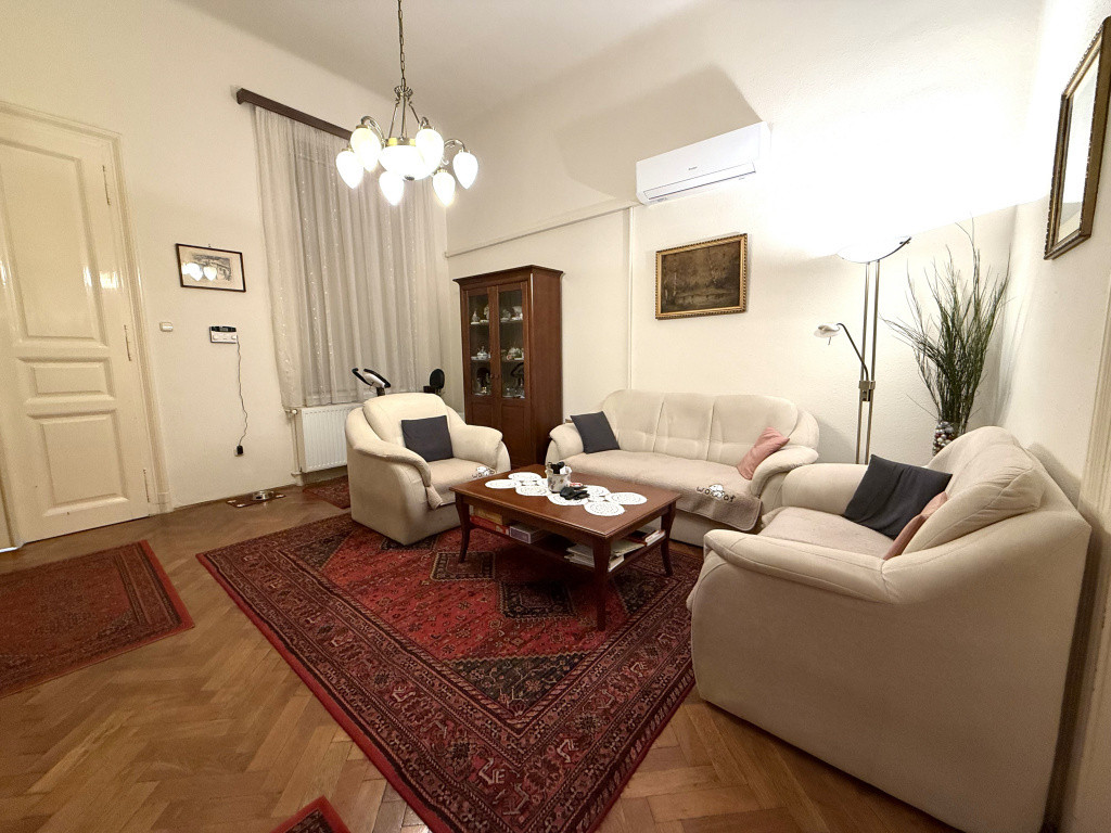 Eladásra kínálok egy 97 m2 alapterületű nagypolgári három szobás társas házi lakást. A nappali 23 m2 alapterületű, udvarra néző ablakos, légkondicionált, innen nyílik a 25 m2 alapterületű utcára nyíló ablakos szoba, ami a hálószobából is megközelíthető. A hálószoba 16,5 m2 alapterületű, utcára néző ablakos. A lakás körbe járható, külön és egybe nyíló szobákkal. A konyha udvarra néző ablakos, beépített konyha bútorral,villany tűzhellyel és gáz főző lappal,szag-pára elszívóval az étkező is kényelmesen elfér mellette. A konyhából nyílik egy tároló helység és a kamra. A fürdőszoba 8 m2 alapterületű sarokkádas, mosdóval és zuhanykabinnal, a toalett innen nyíló külön ablakos helységben kapott helyet. A meleg vízről és az otthon melegéről gáz cirkó gondoskodik, vízórával felszerelt lakás.