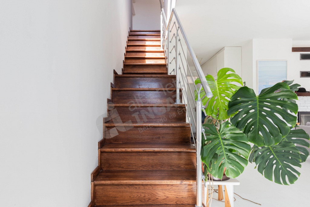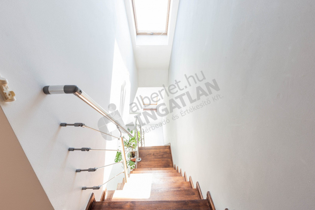 Padlóburkolat: valódi fa hajópadló (alsó szinten), világos fa parketta (felső szinten)