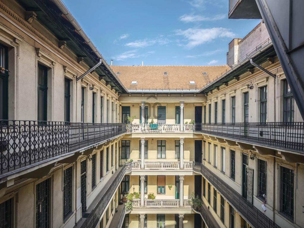Remek elosztású, 2 szoba + hallos, 4. emeleti nagypolgári lakás eladó az Oktogon közelében.
