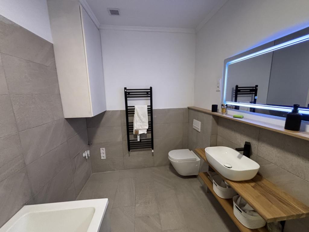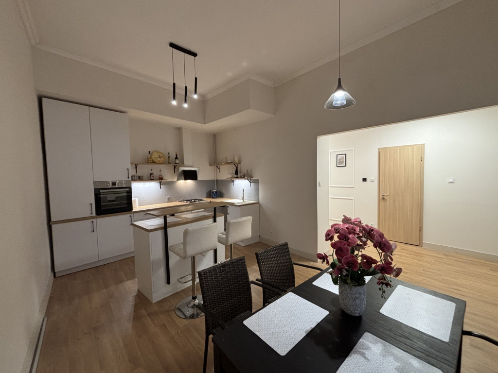 Teljesen felszerelt, minőségi anyagokkal felújítva, HŰTŐ–FŰTŐ KLÍMÁVAL (Mitsubishi), ARISTON KONDENZÁCIÓS GÁZKAZÁNNAL, új víz-, gáz- és villanyhálózattal.