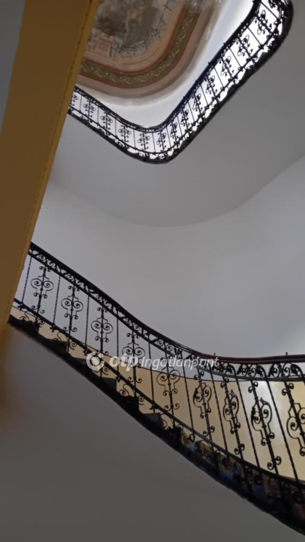 Gyönyörű, freskóval díszített lépcsőházban az első emeleten helyezkedik el a lakás, két bejárati ajtóval rendelkezik, amelyekből az egyik a lépcsőházból, a másik a körfolyosóról nyílik. 4,1 méteres belmagassága, hatalmas három méteres fa ajtajai tágas teret biztosítanak. A belmagasság miatt praktikusan galériázható.