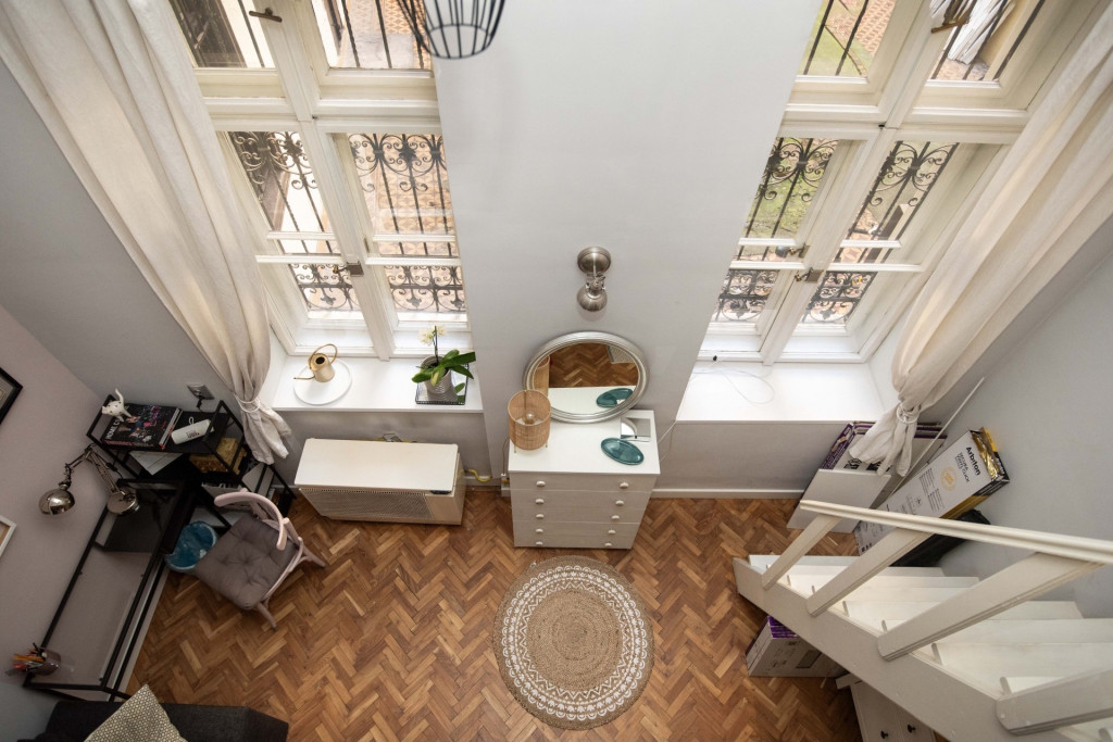 A lakás belmagassága 4,6 méter, mely különleges tágasságérzetet ad, amitől a lakás igazán elegáns és levegős. A nagy belmagasságnak köszönhetően sikerült egy 11 nm-es állógalériat kialakítani, ahol kényelmesen elfér egy franciágy és egy szekrény.