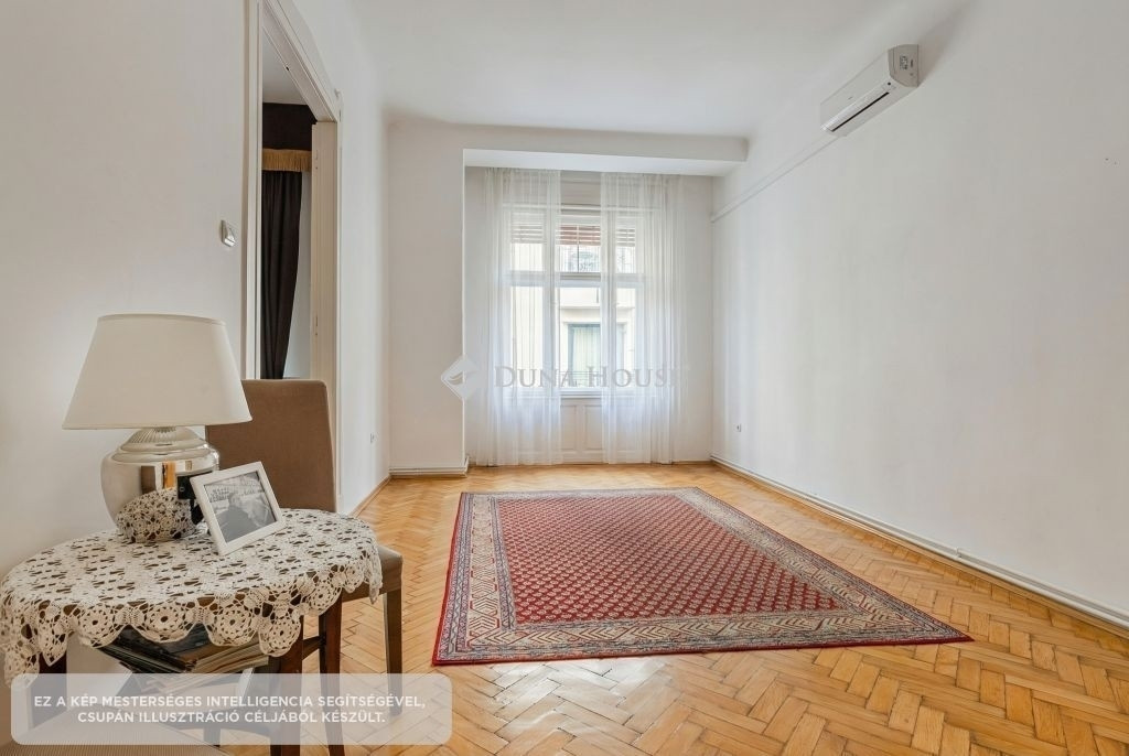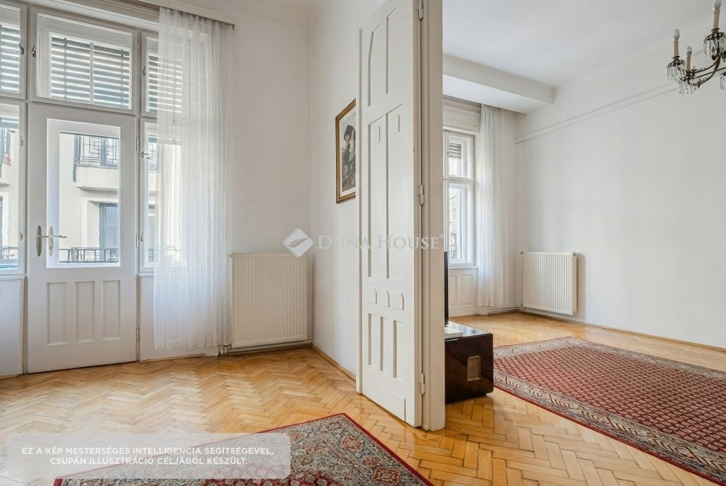 83 m², második emelet, három különnyíló háló, napfényes erkély az utcafronton – Operaház és Deák tér pár perc.