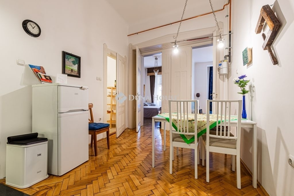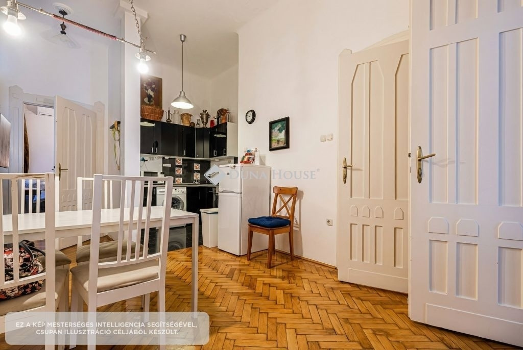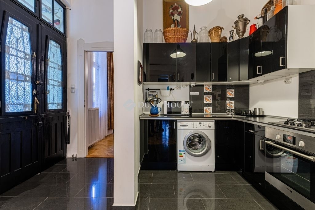 Teljes körű felújítás: új elektromos hálózat, új cirkó, két fürdő, gépesített modern konyha – mindezt eredeti parkettával és nagypolgári hangulattal.