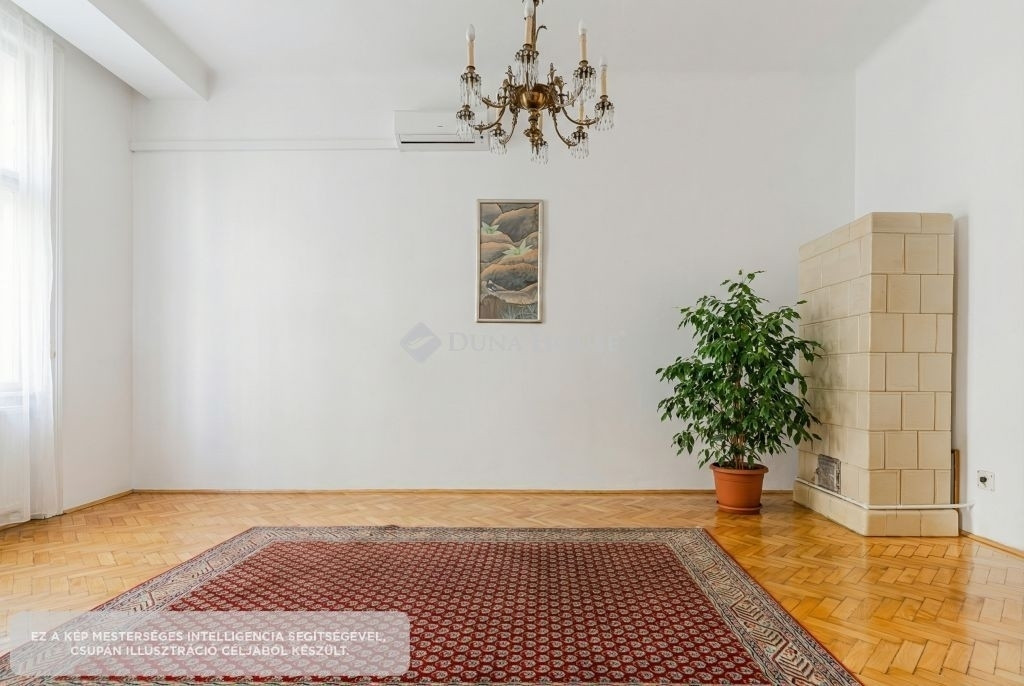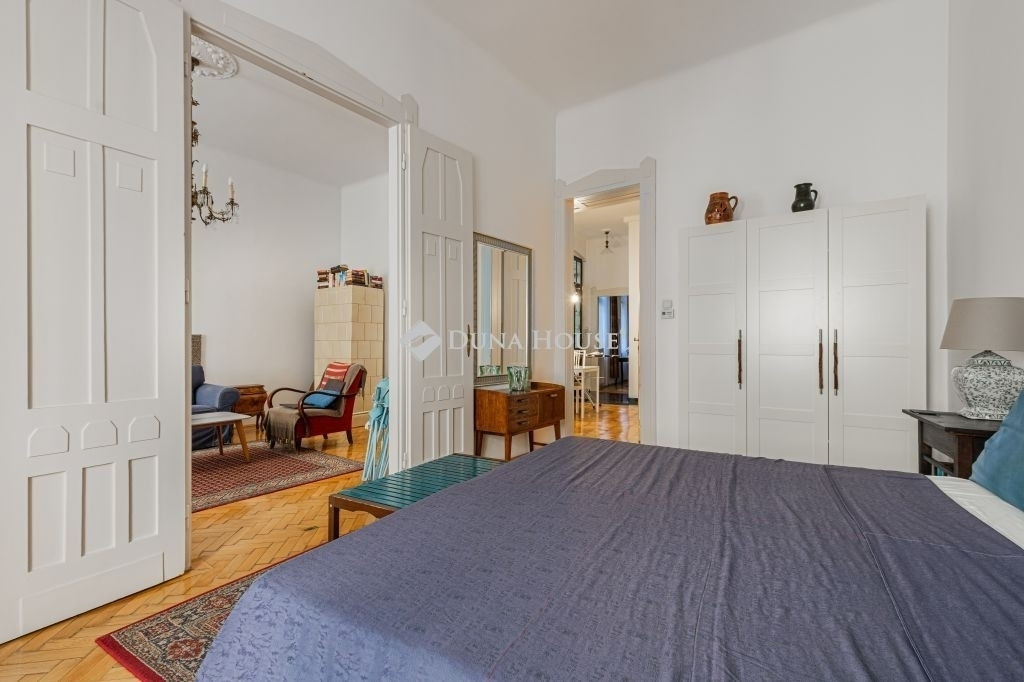 83 m², második emelet, három különnyíló háló, napfényes erkély az utcafronton – Operaház és Deák tér pár perc.
