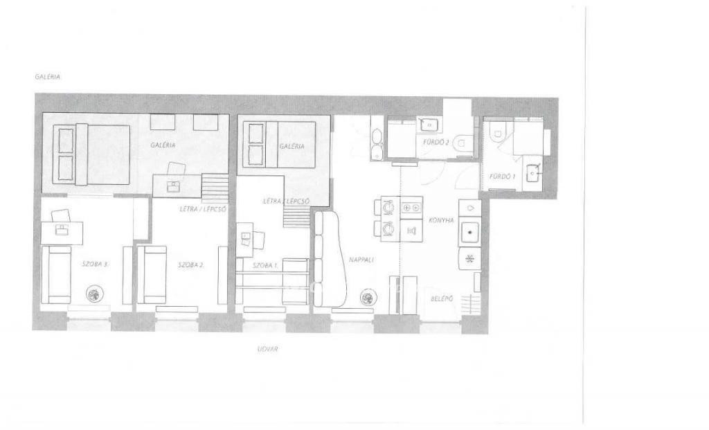 A tulajdoni lap szerint 71 nm-es alapterület a nagy belmagasság révén galériás megoldásokkal bővült.