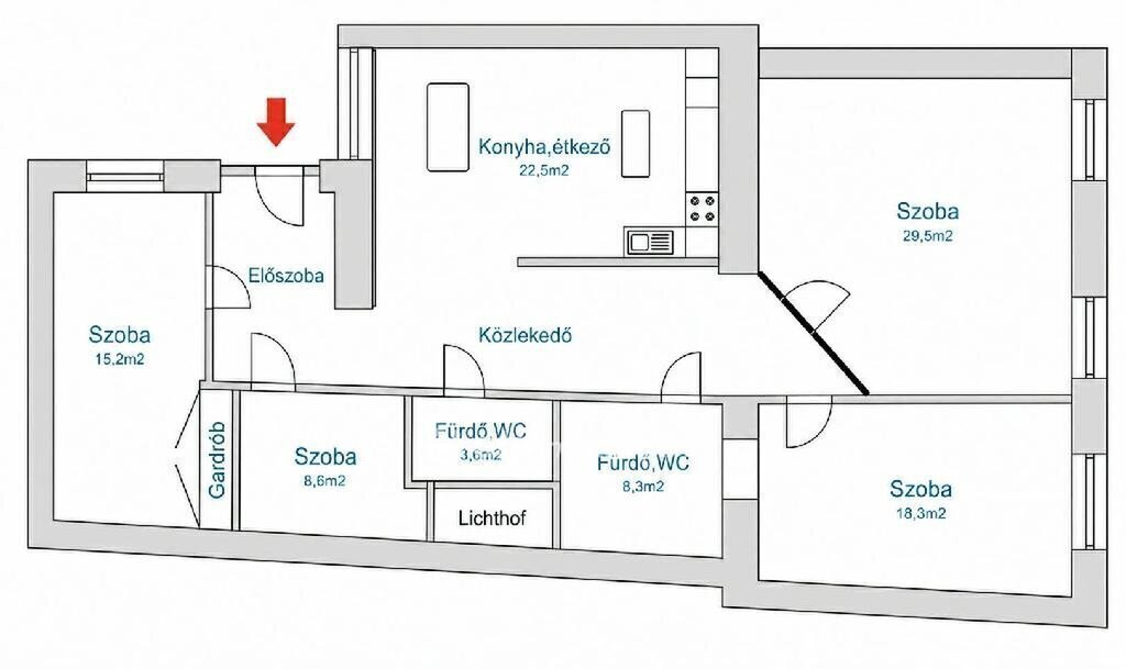 A 4 külön nyíló szoba és 2 fürdőszoba ideális választássá teszi akár nagyobb családoknak, akár befektetőknek, akik több bérlőben gondolkodnak.