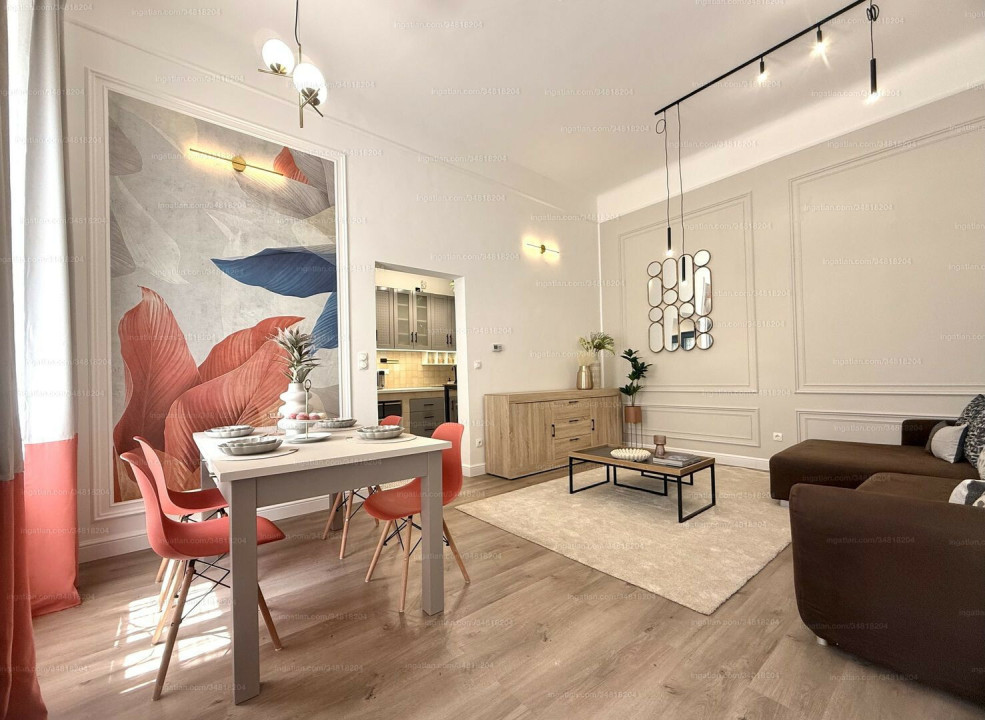 Szabó Zsolt 06-70-886-2321 A képeken a megújult épület látványtervei jelennek meg, ízelítőt adva a kész állapot hangulatából. A ház megőrizte klasszikus polgári hangulatát, jelenleg azonban nem rendelkezik lifttel. A tervezett tetőtéri ráépítés során megújul a külső és belső homlokzat, valamint a lift beépítése is megvalósul. A belváros szívében, mégis csendes udvari – felújított, elegáns polgári otthon a Nyugati és az Oktogon között! Budapest központi részén, a 4-6-os villamos vonalán, a Vörösmarty utcában eladó egy 50 m²-es, teljes körűen felújított, 2. emeleti polgári lakás, amely a nyüzsgő belvárosban is a nyugalom szigetét kínálja. Csak hozd a bőröndöd – a lakás teljesen berendezett és gépesített, azonnal költözhető! A téglaépítésű, gondozott társasház második emeletén található otthon nappali + különnyíló hálószoba elrendezésű, önálló konyhával. A délkeleti tájolású nappali és az északkeleti háló ablakai csendes belső udvarra néznek, így a lakás világos, de mégis nyugodt. A felújítás során a lakás praktikus és modern elrendezést kapott, tároló galériával, külön WC-vel, háztartási helyiséggel és kádas fürdőszobával (törölközőszárítóval). A beépített konyha minden szükséges géppel felszerelt (sütő, gázfőzőlap, hűtő, mosógép), mindkét szoba klimatizált, a teljes bútorzat és a képeken látható kiegészítők az ár részét képezik. Ez a lakás ideális választás mindazoknak, akik a belvárosi élet előnyeit szeretnék élvezni kényelmes, stílusos és gondozott környezetben.