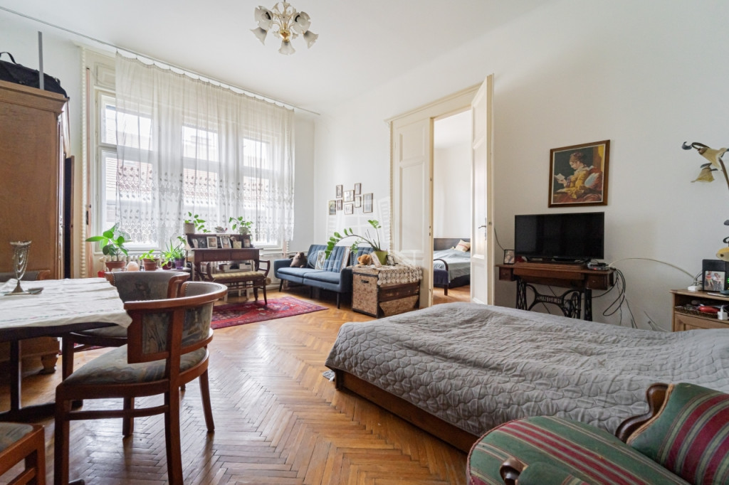 Világos, 3 szobás polgári lakás a VII. kerület szívében – kiváló elosztással eladó.