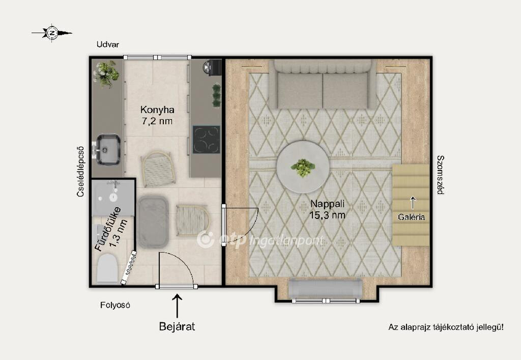 A lakás számos előnnyel rendelkezik: kompakt, jól kihasználható tér, alacsony rezsiköltség, kiváló bérbe adóhatóság, stabil befektetési potenciál.
