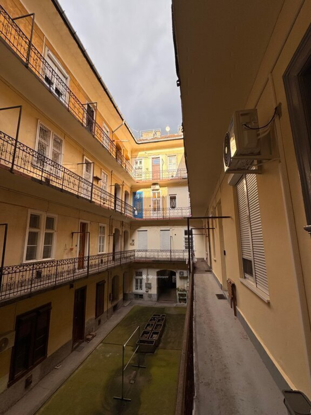 A belső udvari elhelyezkedés csendes, zavartalan lakókörnyezetet garantál, ritka kombináció a belvárosban.