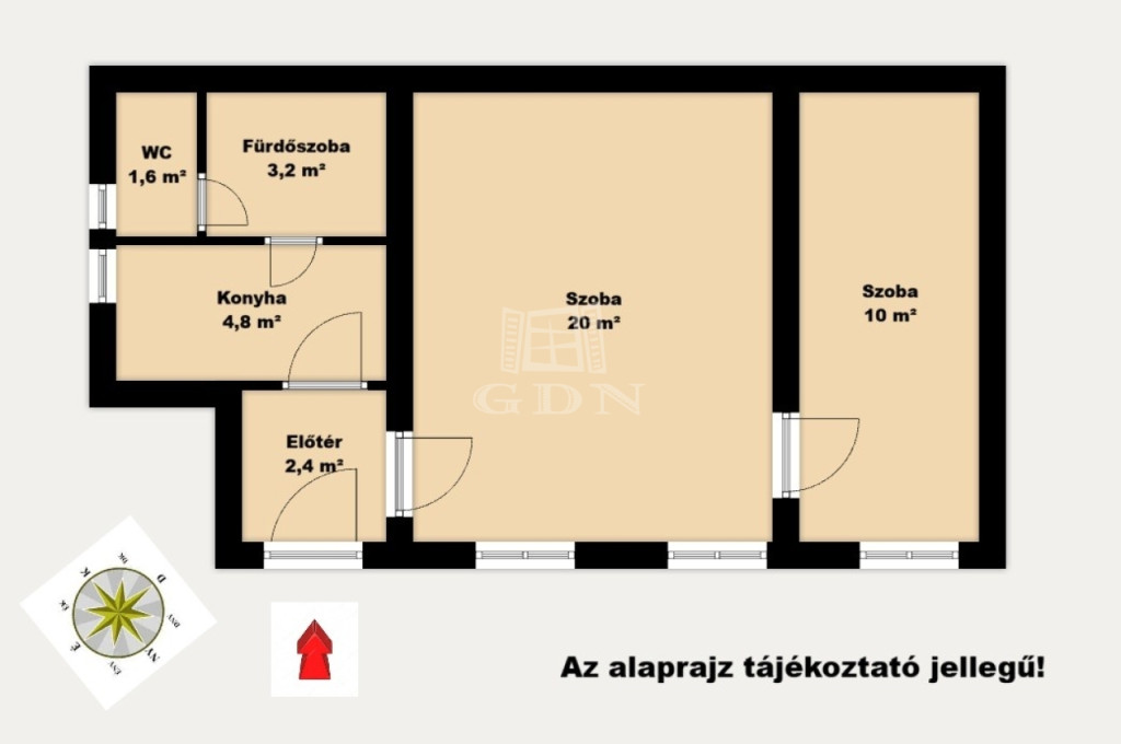 - 2 SZOBÁS elrendezés, 42 m²