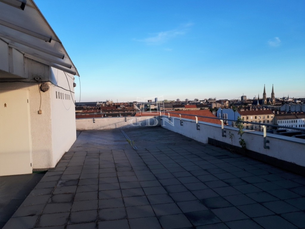 Városligettől 5 perc sétára a különleges Bajza utcai garzonházban, 34 m²-es, 1 szoba+hallos, loggiás lakás, 24 órás portaszolgálattal, napozós tetőterasszal rendelkező házban eladó