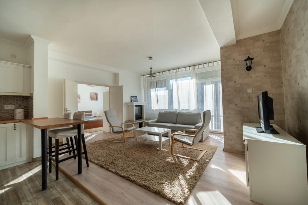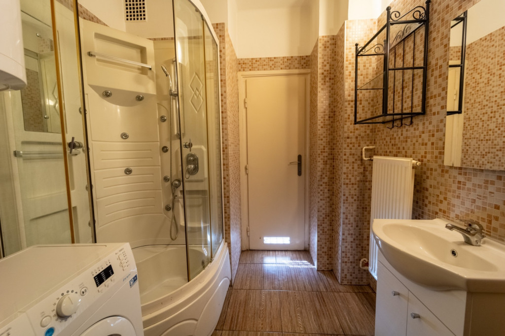Komplett bútorozott és gépesített, a konyha mosogatógéppel és mikróval is felszerelt, de spájz és egyéb tárolóhelyek is kialakításra kerültek, a jelenlegi bérlők befektetési vásárlás esetén szívesen maradnának az ingatlanban.