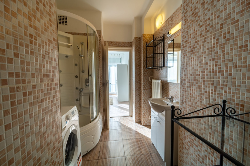 A VII. kerület Baross téren, közvetlenül a metrólejáratnál nappali + 2 hálós, 2 fürdőszobás, bútorozott, gépesített, klimatizált, utcára néző, 74 m2-es lakás eladó. A közös költség 21460 Ft, a fűtésért a földszinti bérlő miatt nem kell fizetni, a víz és a villany egyedi mérés és fogyasztás alapján fizetendő. Műanyag nyílászárós ablakai mindenhol redőnyösek, így a külső zajok éjszaka jól szűrhetőek, nappal pedig délkeleti fekvésének köszönhetően rendkívül világos.
