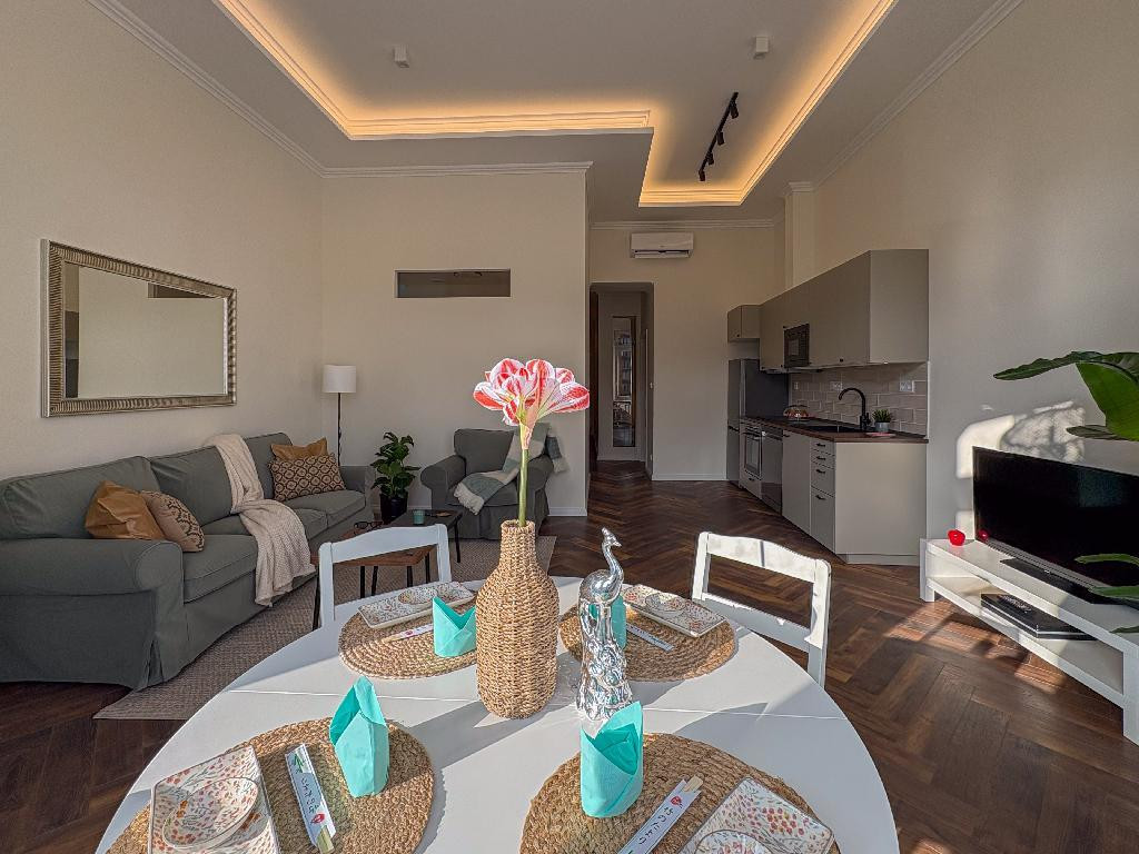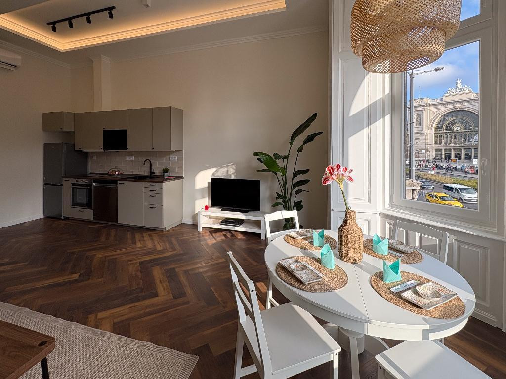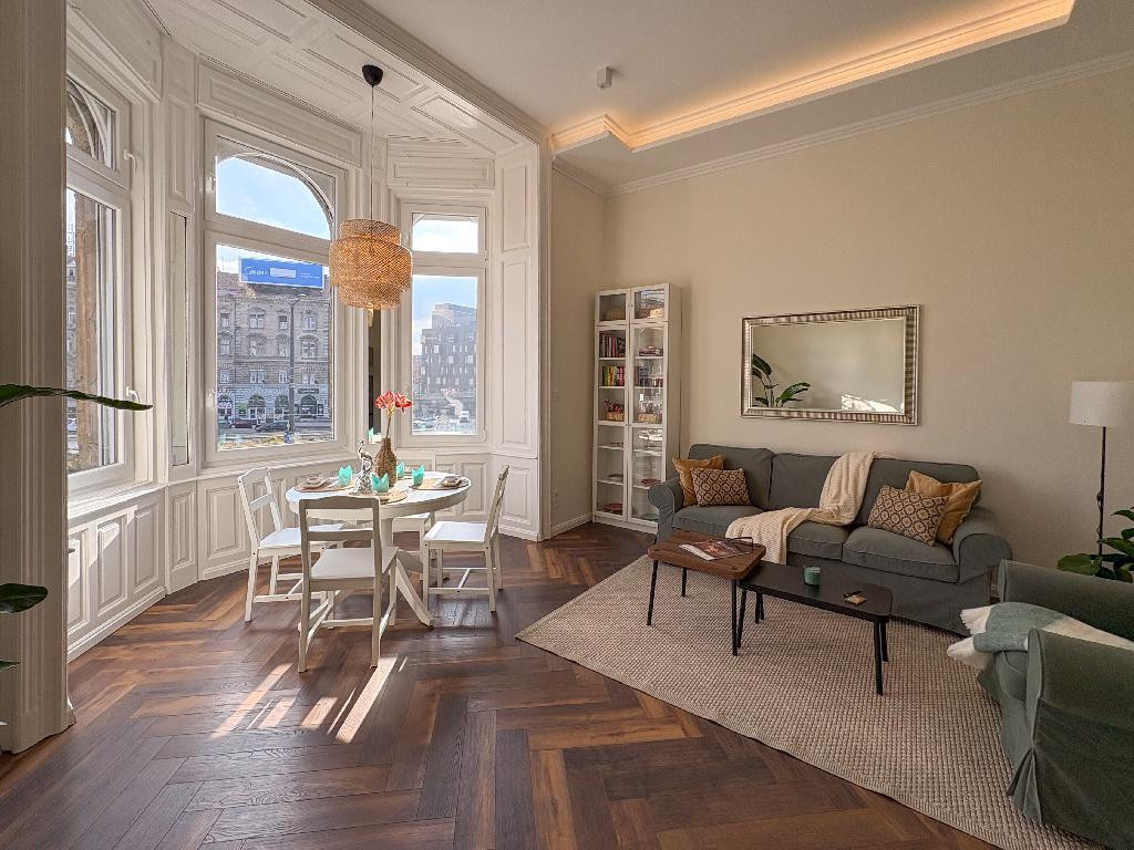 Eladó egy teljes körűen, igényesen felújított, berendezett, gyönyörű dizájn lakás VII. kerületben, Baross téren.