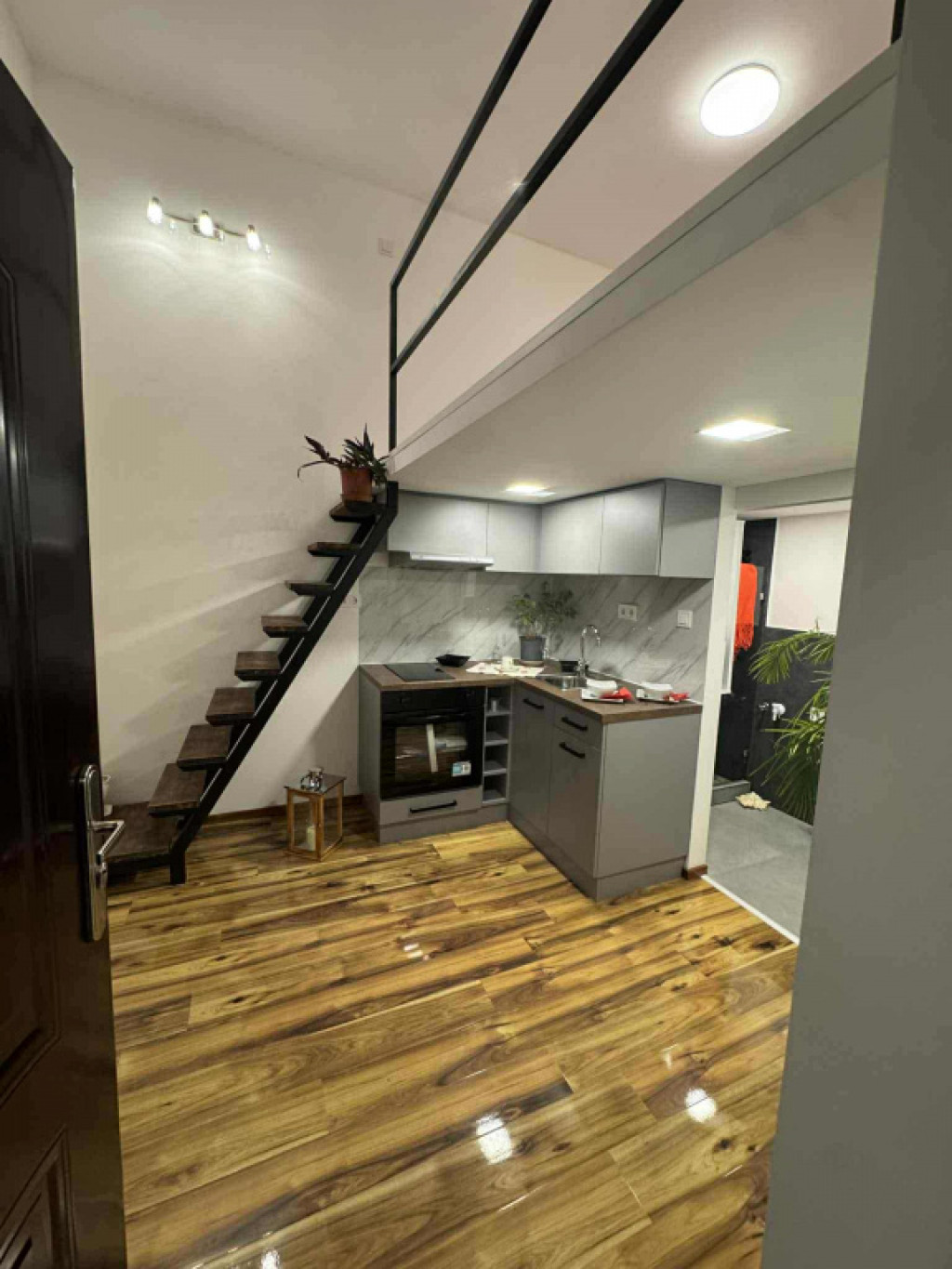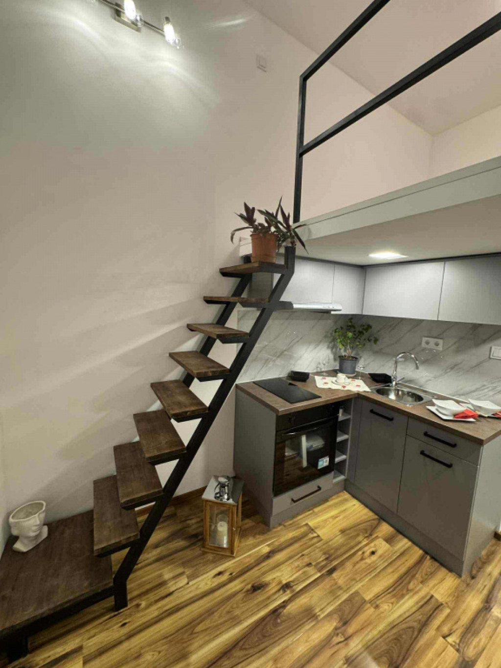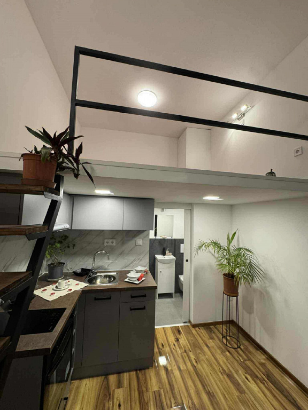 Mindkét lakásban az alsó szinten amerikai konyhás nappali és fürdő - WC kerül kialakításra és a galéria részen hálószoba.