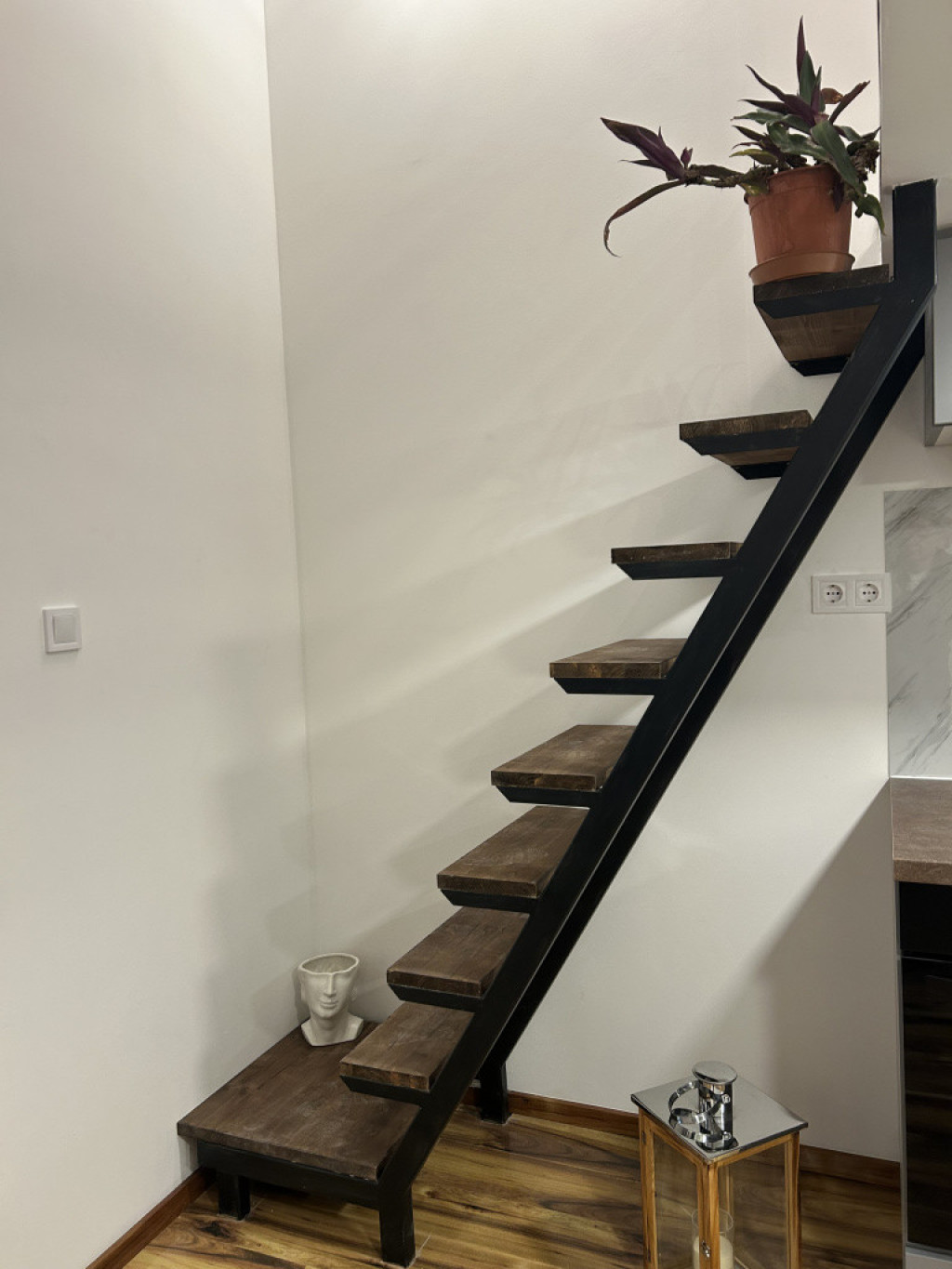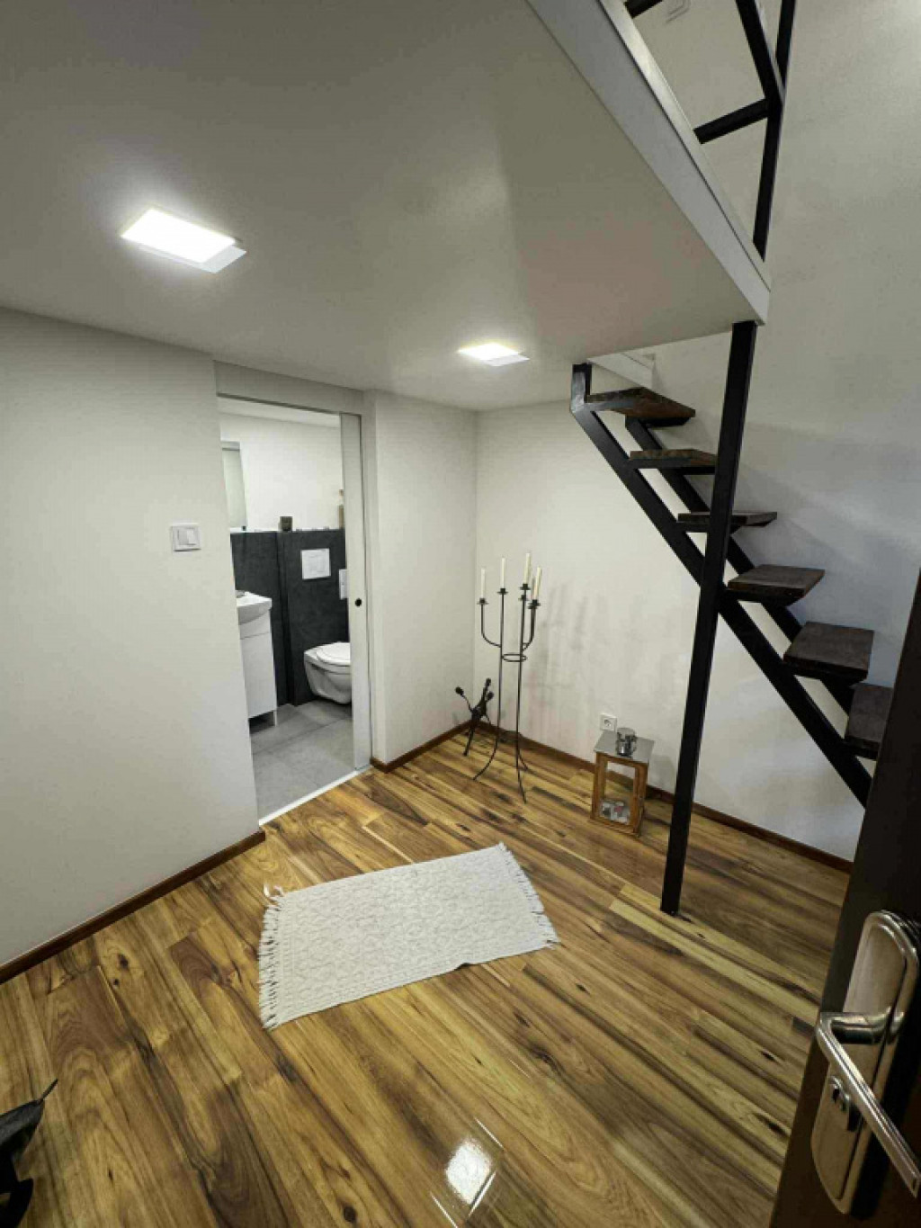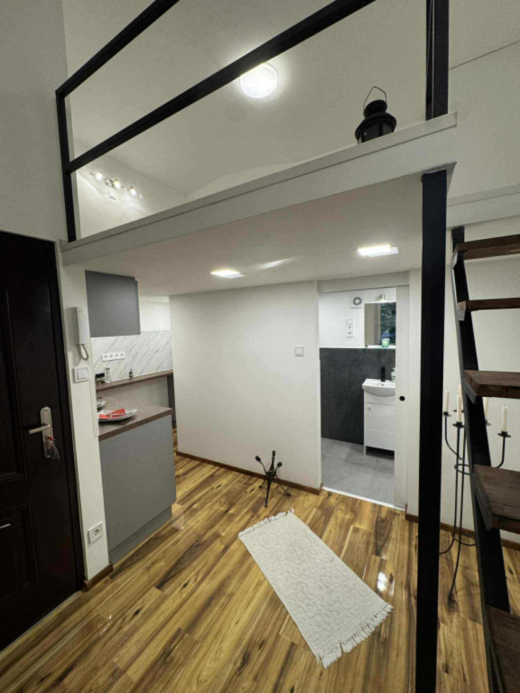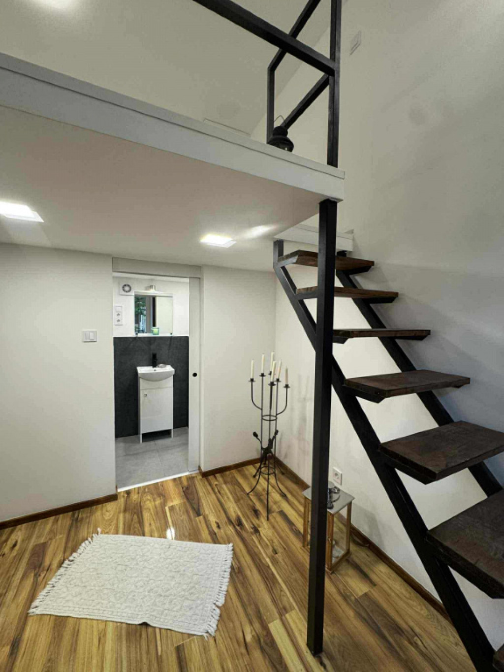 Mindkét lakásban az alsó szinten amerikai konyhás nappali és fürdő - WC kerül kialakításra és a galéria részen hálószoba.