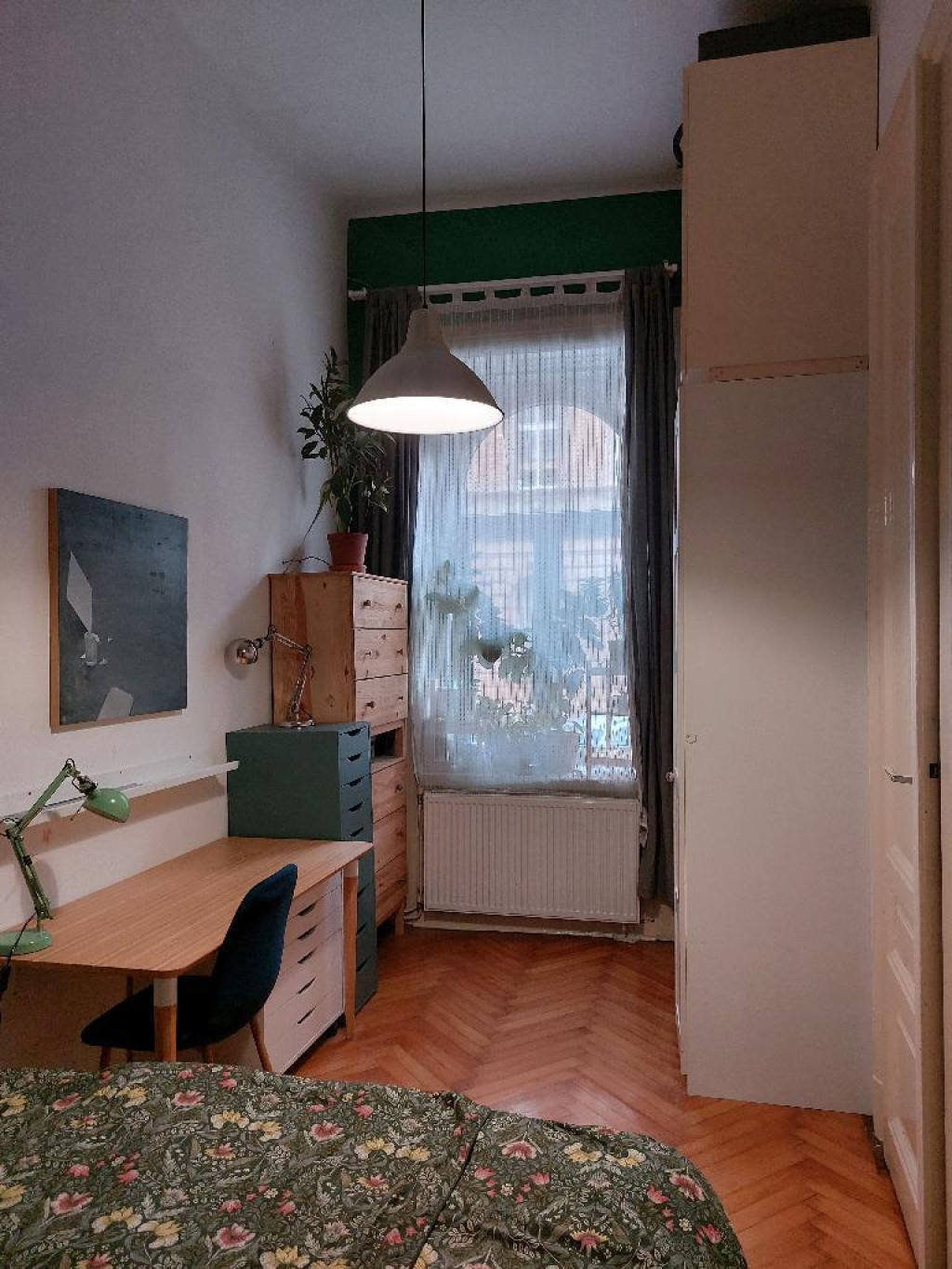 A lakás modern és barátságos hangulatú, ugyanakkor megőrzi a régi polgári otthonok tágas jellegét.