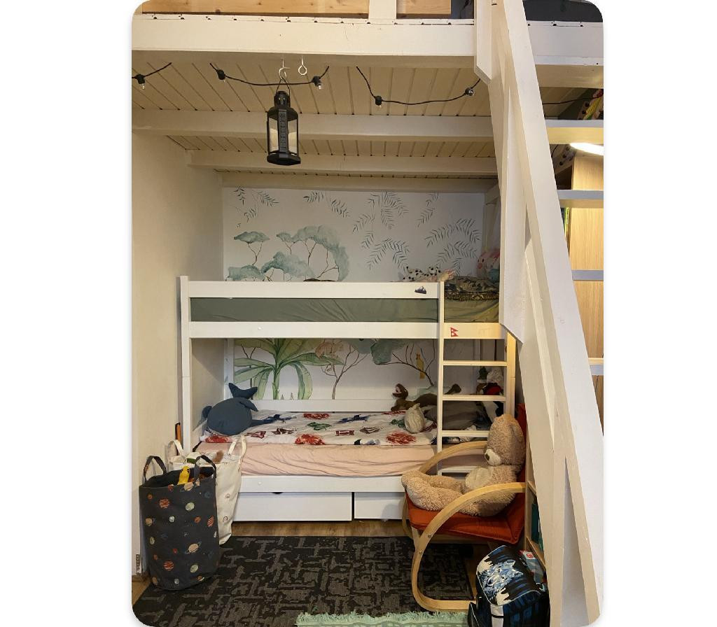 A két szinten kialakított gyerekszoba különösen jól használható, így a rendelkezésre álló alapterület maximálisan kihasználható.