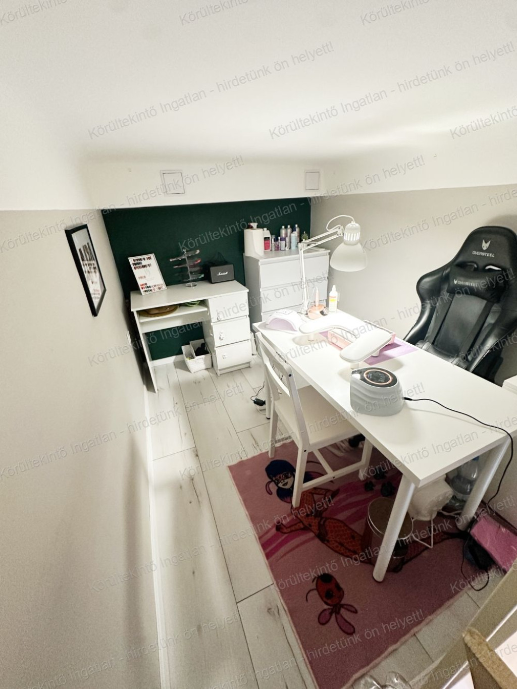 - egy, a nappaliból nyíló, nagy méretű állógaléria (jelenleg kétszemélyes gyerekszoba).