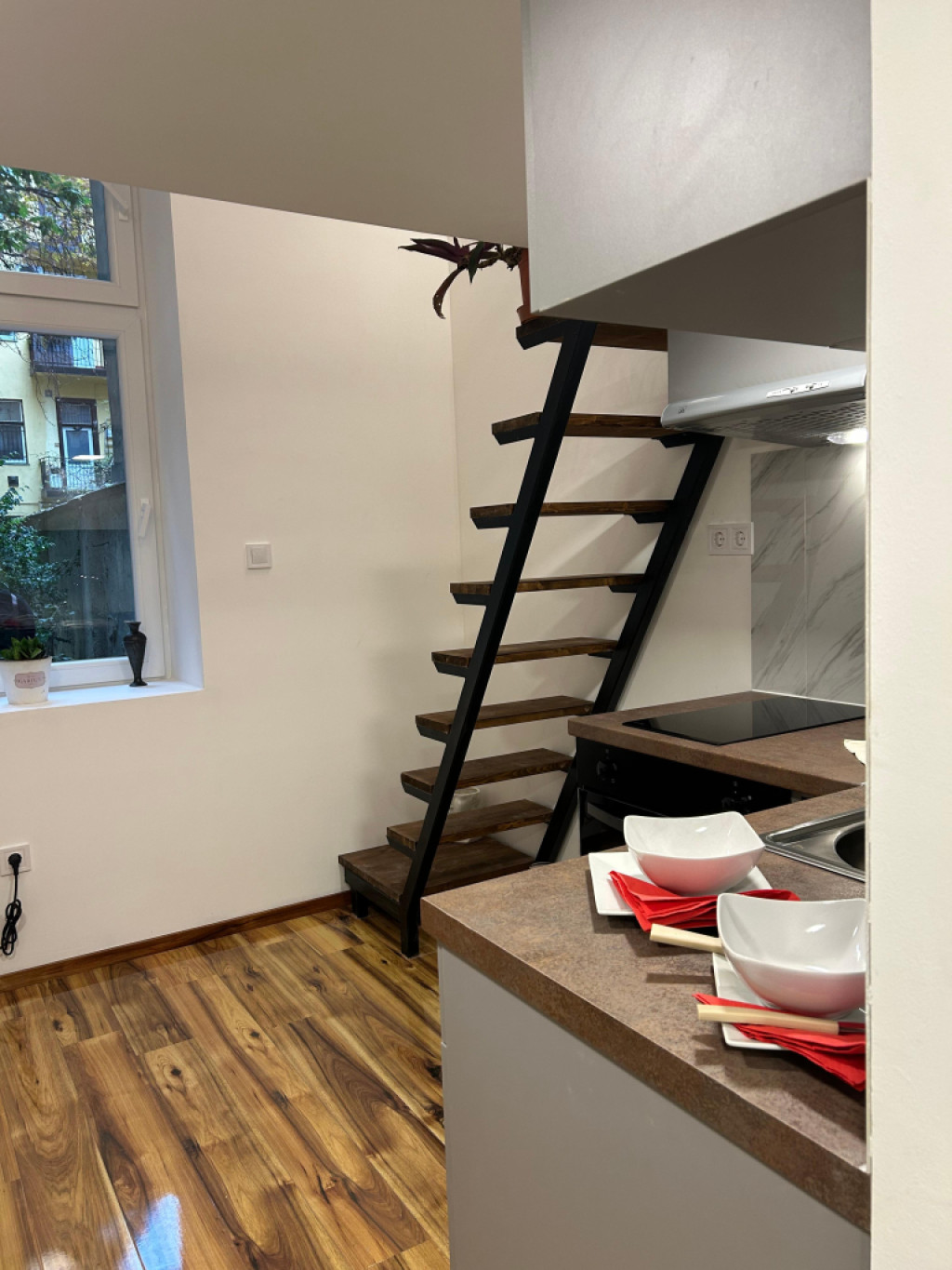 - Amerikai konyhás nappali (19 nm) + hálószoba (13 nm) + galériás hálórész (14 nm)