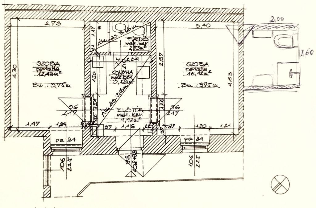 Az ingatlan a 1. emeleten helyezkedik el, és gázcirkó fűtéssel rendelkezik. A lakásban egy konyha- előszobából két szoba és egy fürdőszoba nyílik.