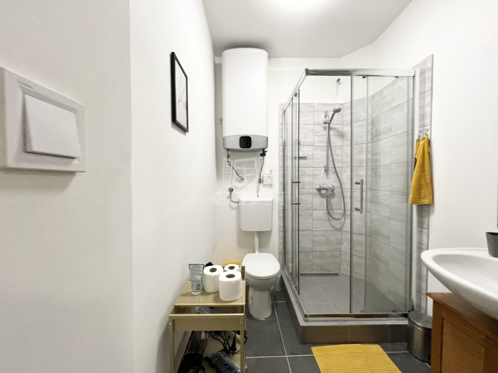 A kisebb szobából közelíthető meg a hátsó fürdő, melyben a melegvizet villanybojler biztosítja. A nyári melegben a klíma gondoskodik a kellemes hőmérsékletről.