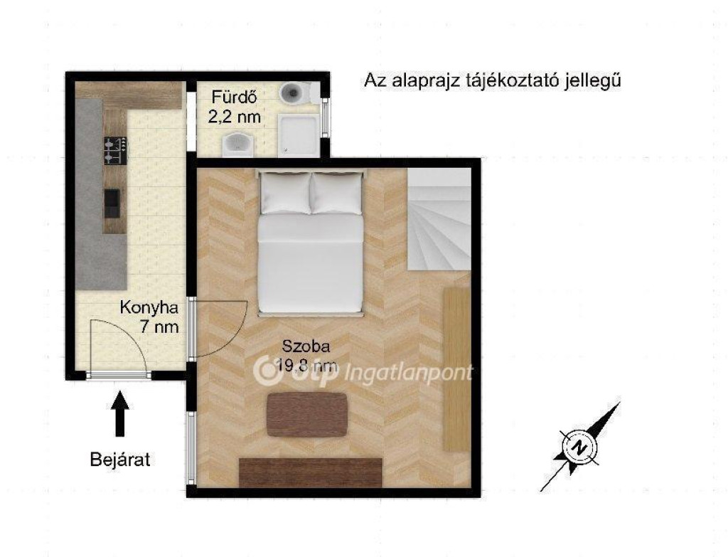 A lakás délnyugati fekvésének köszönhetően délután világos, fűtését konvektor biztosítja. A 3,6 méteres belmagasságú térben egy 8,5 nm-es, 150 cm magas galéria is helyet kapott, amely praktikus plusz teret biztosít.
