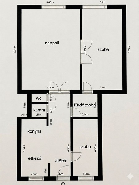 A lakás tágas, napfényes terekkel rendelkezik, elosztása kiváló. A két nagyobb szoba mellett egy kisebb helyiség is található, amely jelenleg tárolóként funkcionál, de könnyedén alakítható dolgozószobává, vagy gardróbbá. Emellett kamra is tartozik az ingatlanhoz. A tulajdoni lapon 82 nm szerepel, míg a valós alapterület 87 nm. A konyhabútor megegyezés tárgyát képezi.