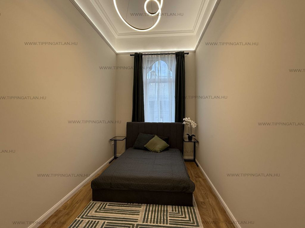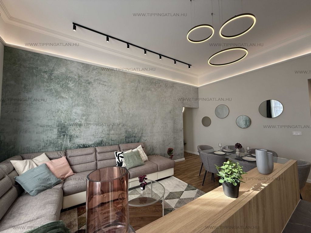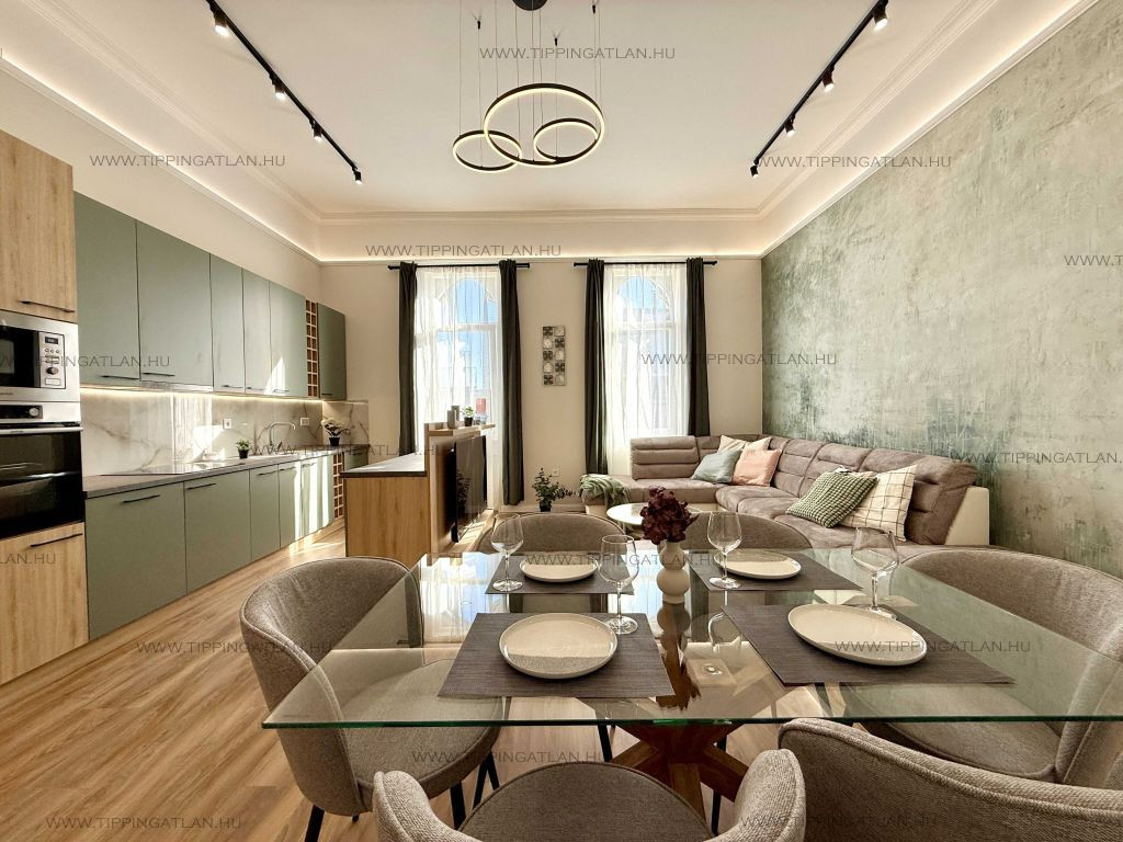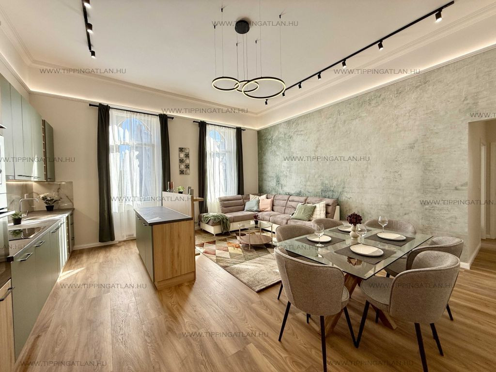 Erzsébet körút - Wesselényi utca saroknál, rendezett, liftes társasház 4. emeletén elkészült egy nappali + 3 hálószobás, 2 fürdőszobás, cirkó fűtéses, 2 klímás lakás. A lakás 88 m2, teljes körűen gépesítve, bútorozva. Az ár a dekorációk kivételével mindent tartalmaz.