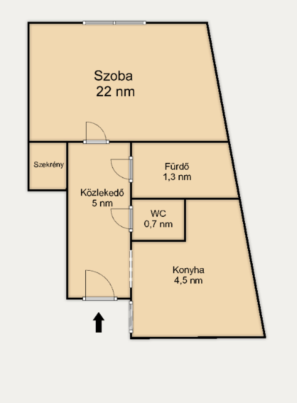 A lakás kiváló elosztású és jól kihasználható terekkel rendelkezik. A 22 m²-es nappali tágas, akár hálórésszel is leválasztható. Az ingatlan része egy nagy előszoba beépített szekrénnyel, egy ablakos konyha spejzzal, egy kádas fürdőszoba, valamint egy külön helyiségben található WC.