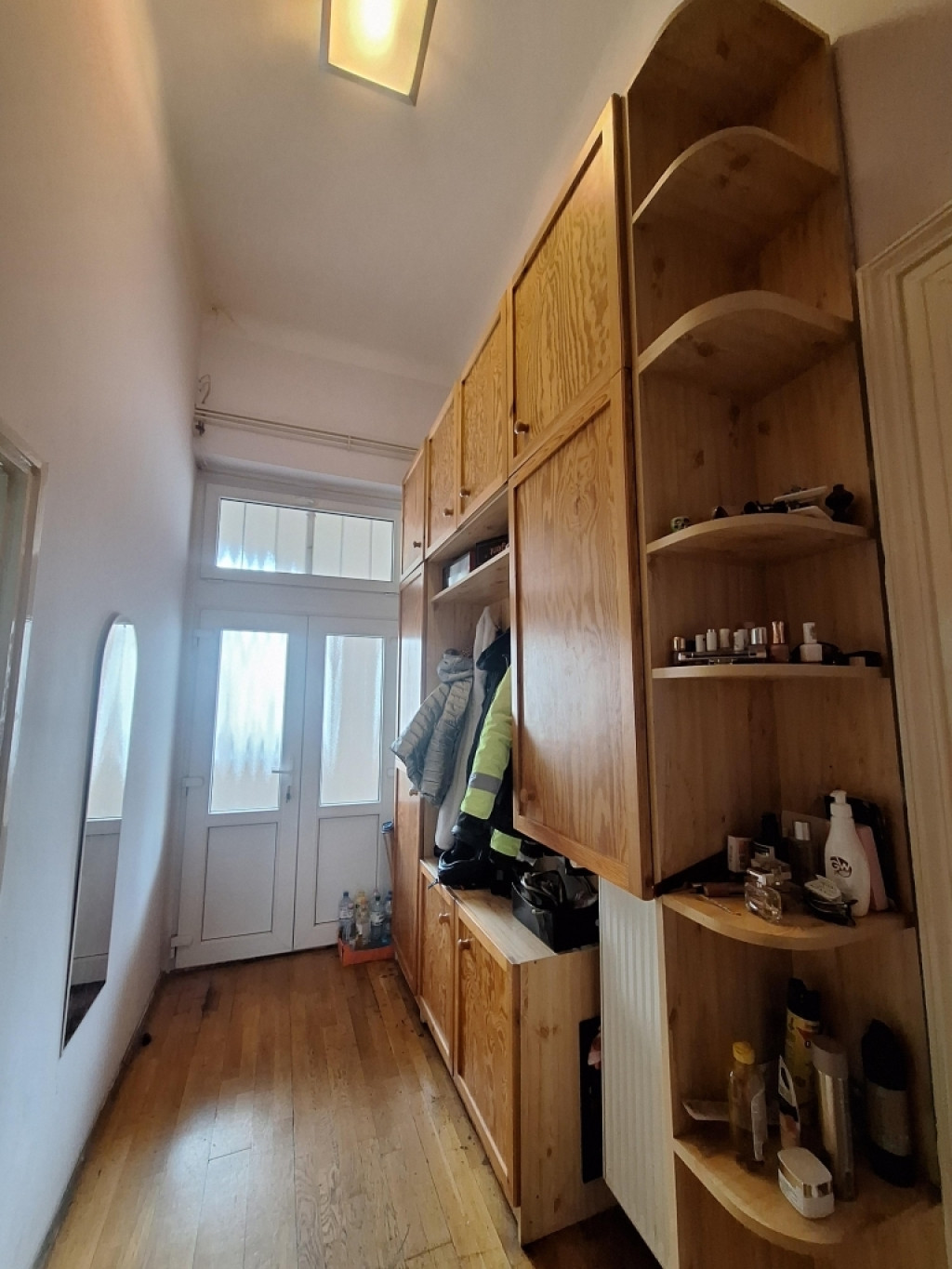 A folyosó, részben már most is galériázott, de a hatalmas belmagasságnak köszönhetően, az egész lakás galériázható, sőt, akár háromszobássá is alakítható. A konyha már teljes felújításra került, a fürdőszoba felújítása, jelenleg folyamatban van.