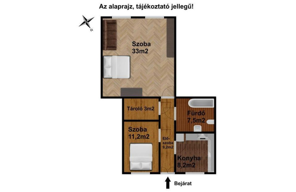 - Az egyik szobát és a folyosót, laminált padlóval burkolták.
