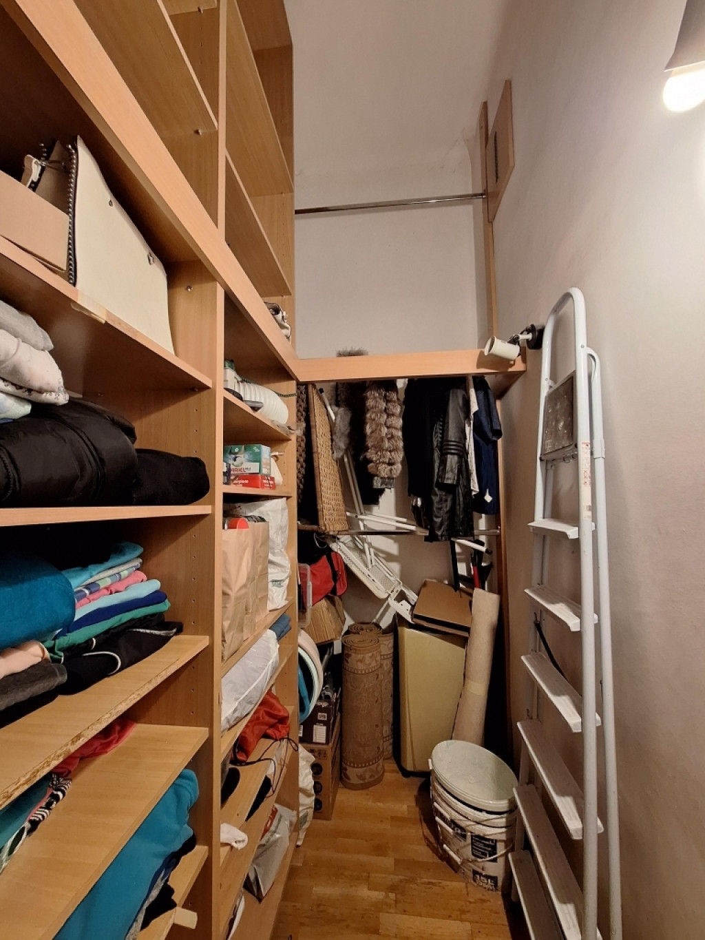 A folyosó, részben már most is galériázott, de a hatalmas belmagasságnak köszönhetően, az egész lakás galériázható, sőt, akár háromszobássá is alakítható. A konyha már teljes felújításra került, a fürdőszoba felújítása, jelenleg folyamatban van.