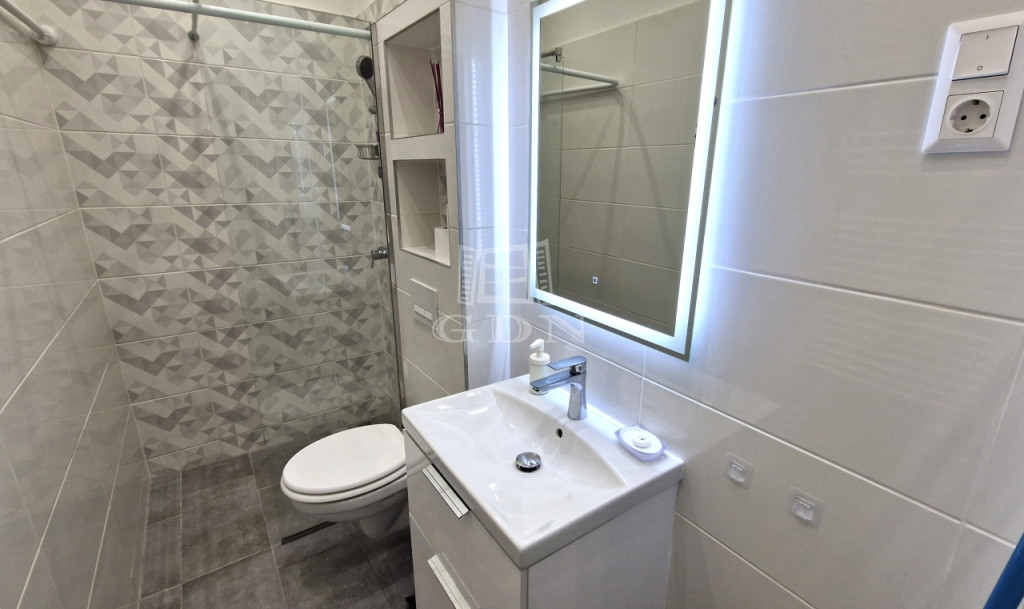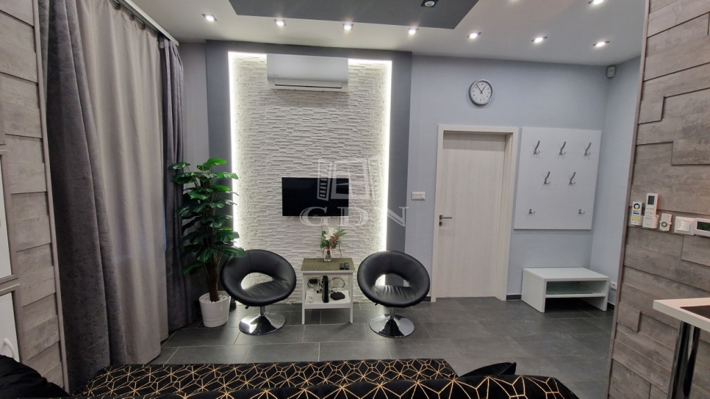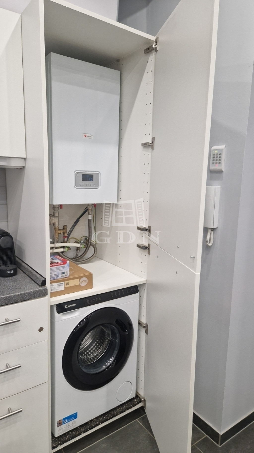 Az Erzsébet körúti appartman amerikai konyhás nappali+háló és modern zuhanyzós fürdőszoba elrendezésű, bútorozott-gépesített, azonnal költözhető.